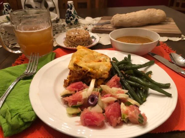 Sasha Martin. who created the Global Table Adventure site said, “Hot Algerian Lasagna blends traditional Italian lasagna with chickpeas, potatoes, ground lamb, and a healthy dose of cayenne pepper.” We made it with ground turkey instead of lamb and it is delicious! We still have a ton in our freezer.