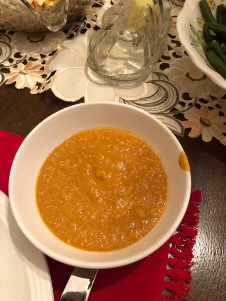 Sunday night’s Gura Global Grub country was Algeria. This is my favorite meal so far. The meal consisted of Hummus bi’l Kammunm (Algerian Chickpea Soup), Algerian Sunset Salad, Artisan French Bread, Hot Algerian Lasagna, Algerian Green Beans, and Bil Zbib (Sweet Couscous with Dried Fruit).