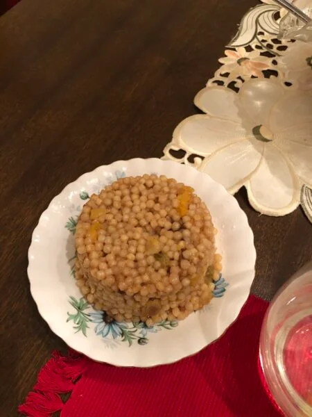 The Bil Zbib was so good. Not too sweet. Couscous with golden raisins, dried apricots, prunes, cinnamon and butter. Yum. We had the leftovers for breakfast with some toasted pecans on top – oh man!