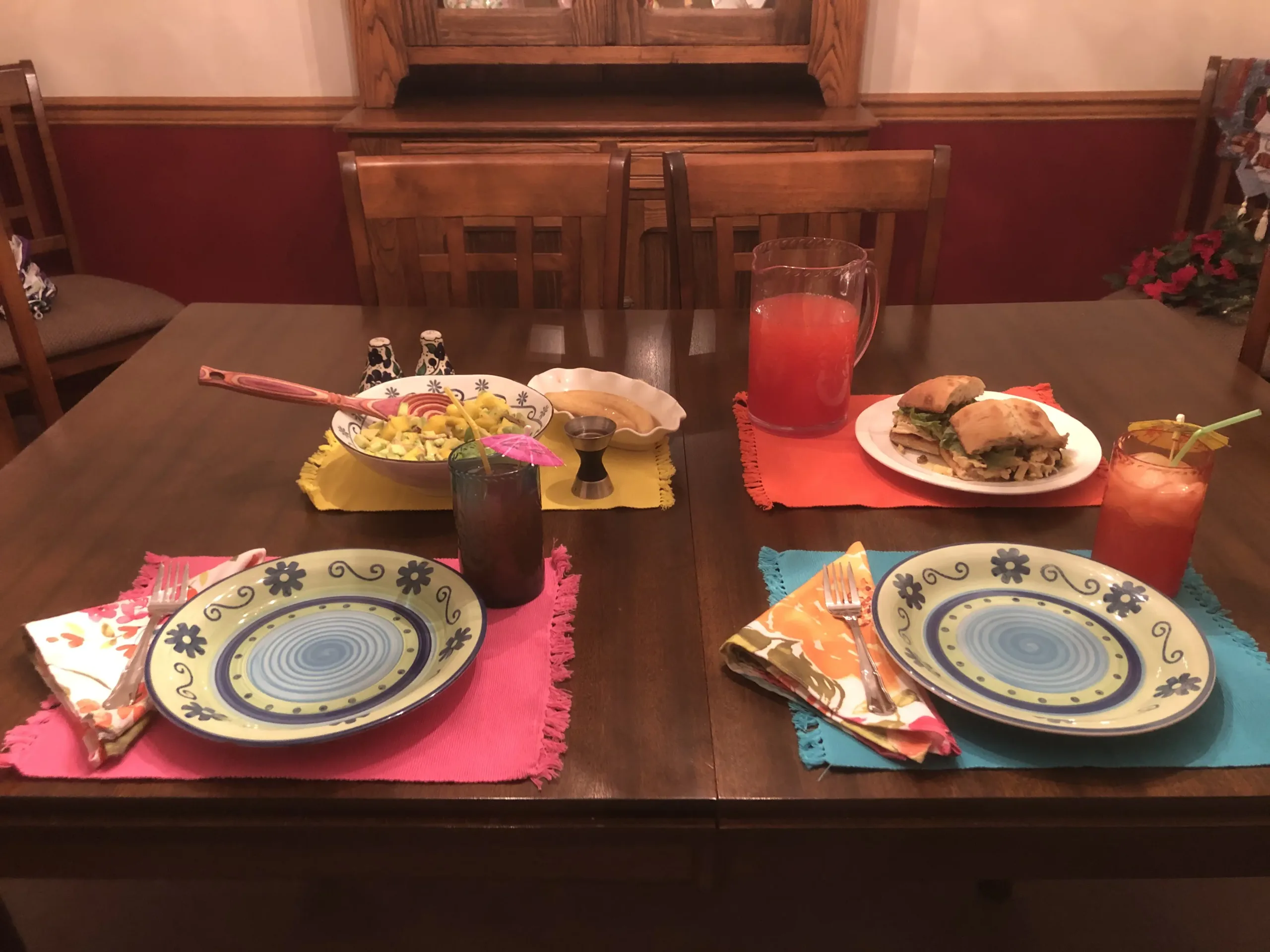 The Antigua and Barbuda meal consisted of Tropical Curried Chicken Salad on Baguette, Spicy Mango and Avocado Salad, Sparkling Grapefruit Breeze (with coconut rum), and Baked Brown Sugar Bananas. All delicious!