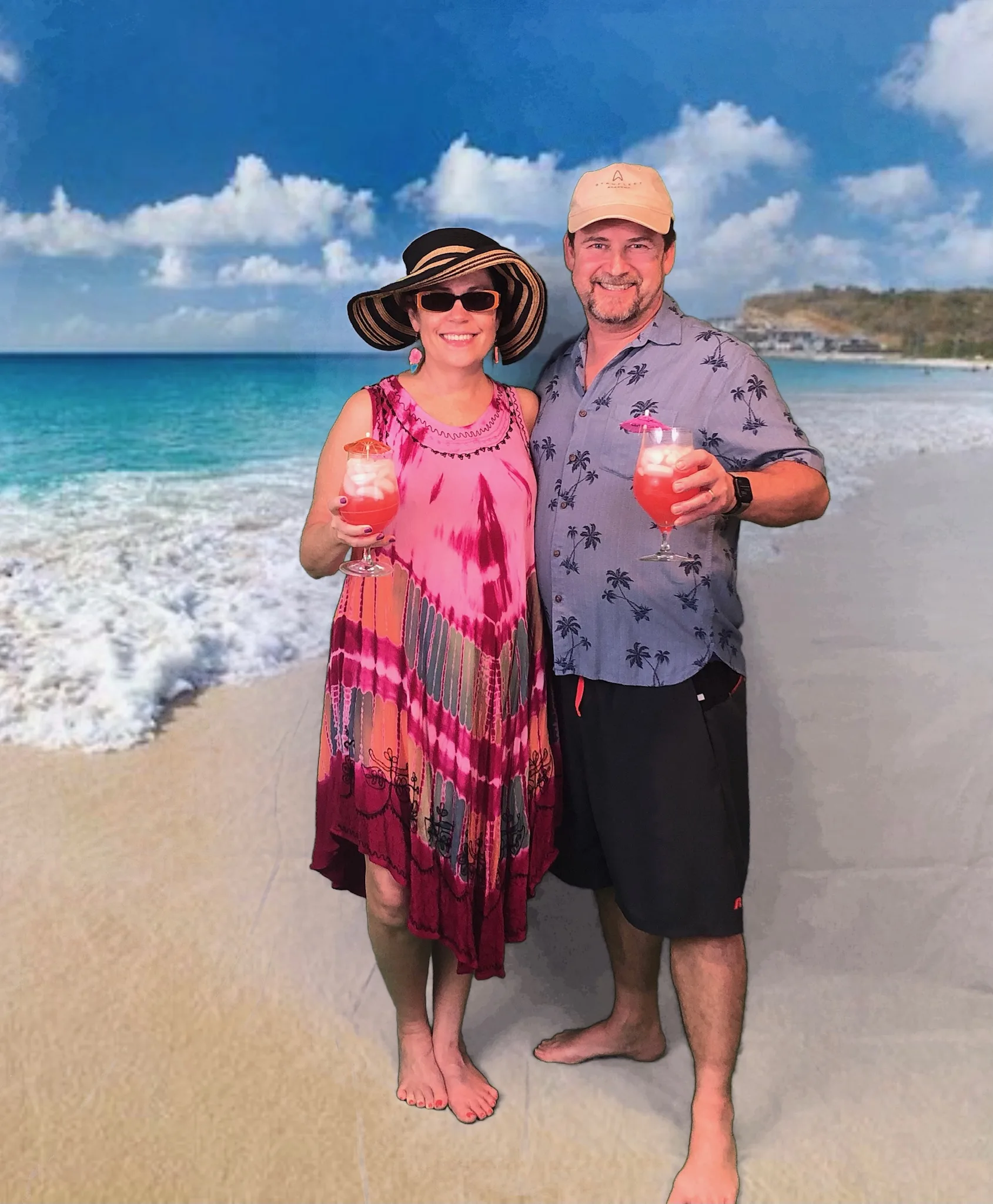 We have been thoroughly enjoying our βarmchair travelsβ, so we decided to set up the green screen we use for our Halloween parties and virtually visit Antigua. It was fun to put on our beachwear and pretend we were on the beach.