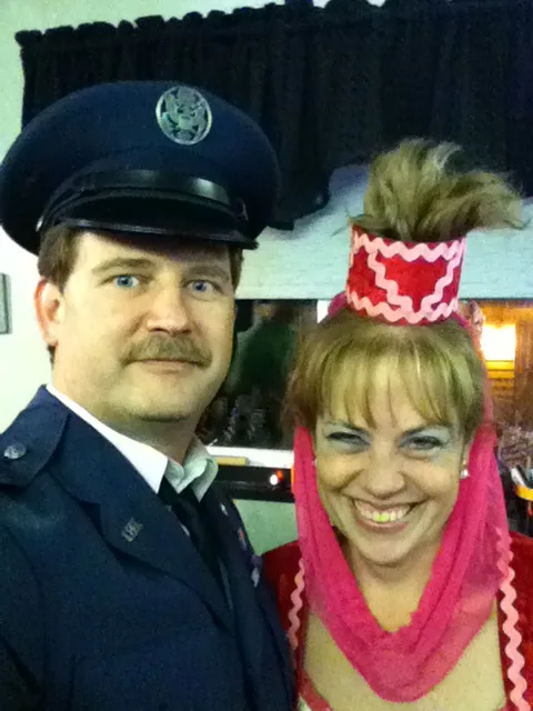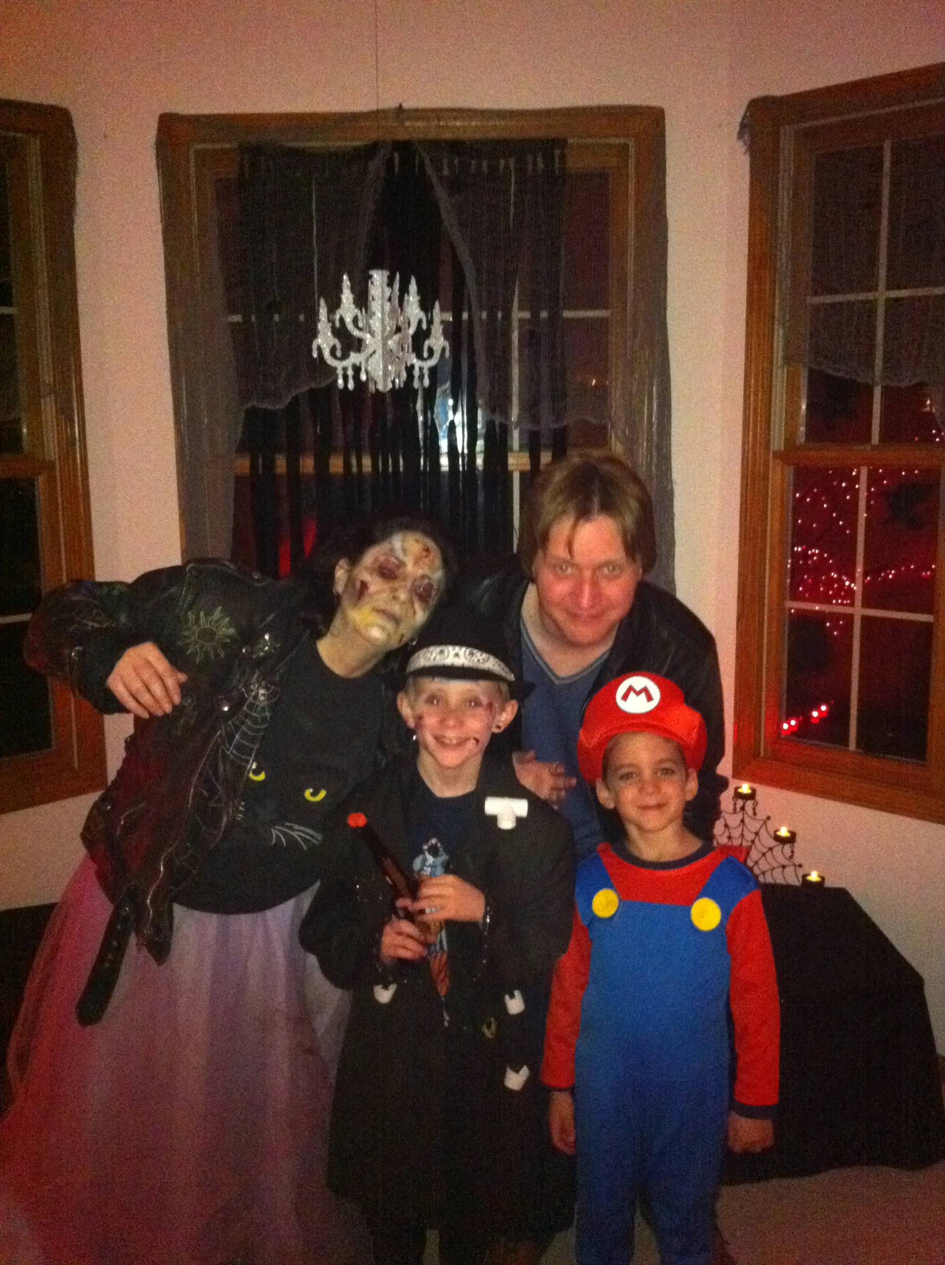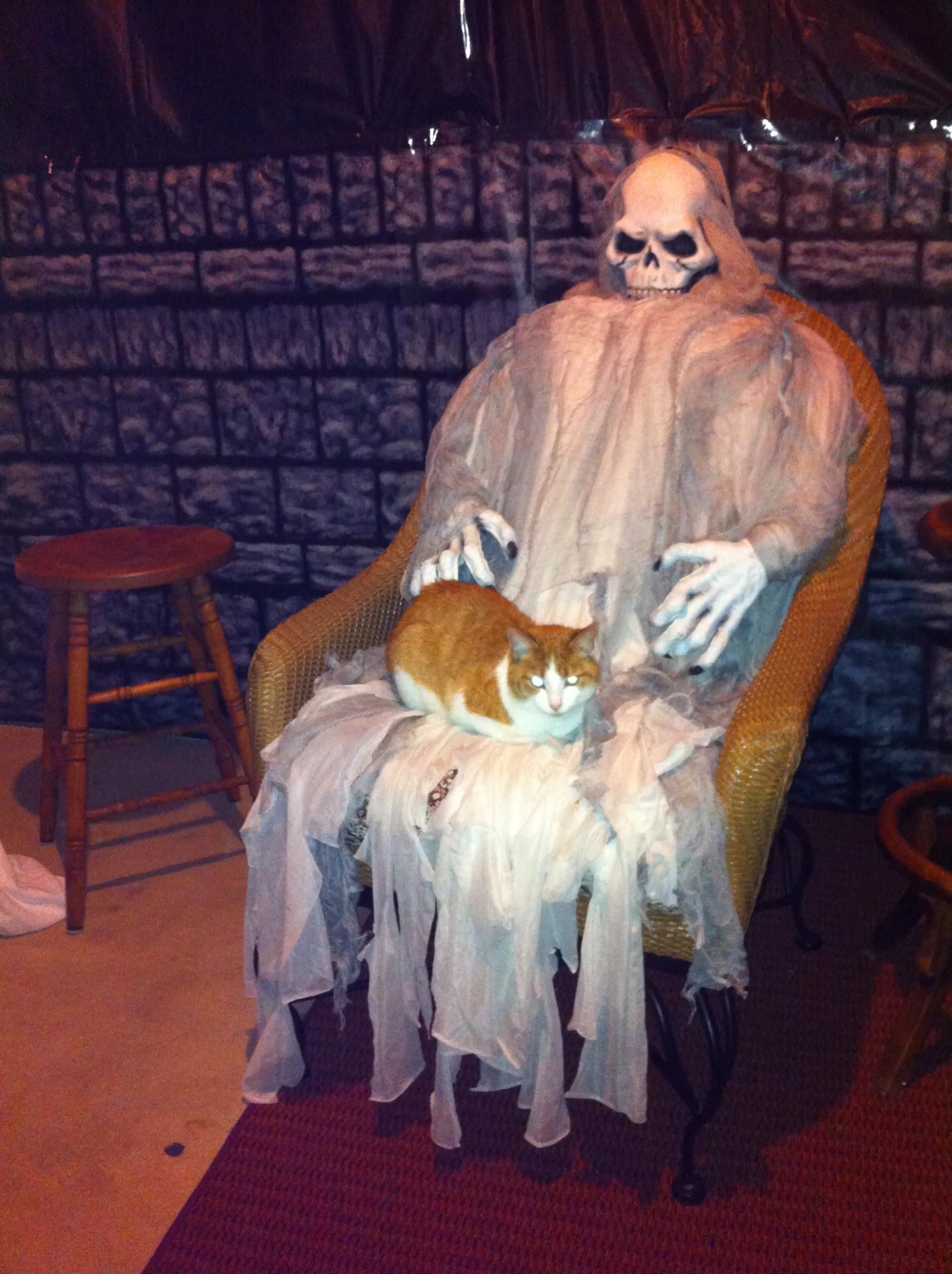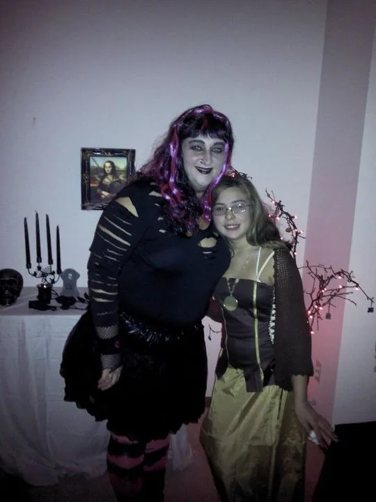 Our granddaughter Eleanor and our coworker Mona both dressed as black cats – they had a blast posing together!