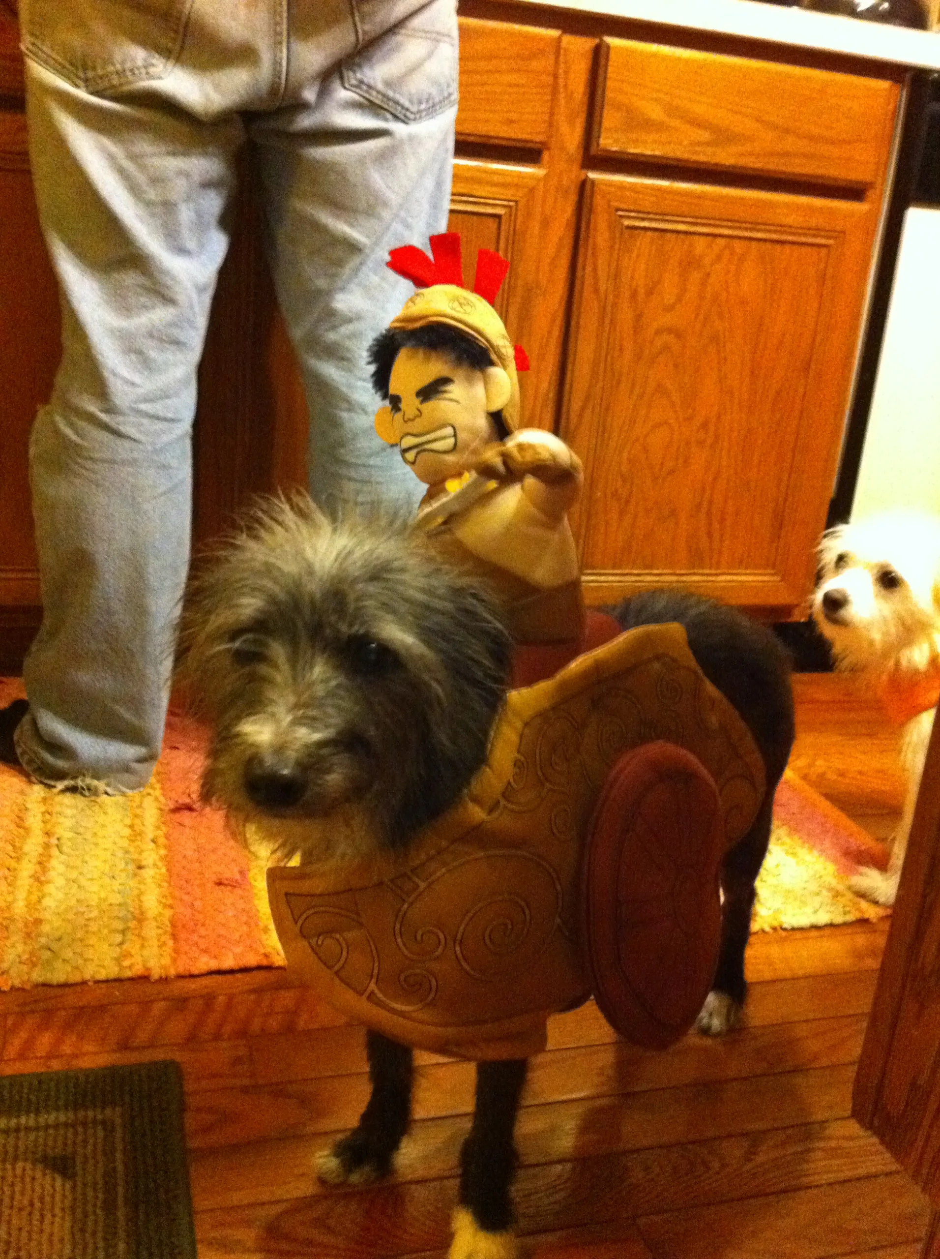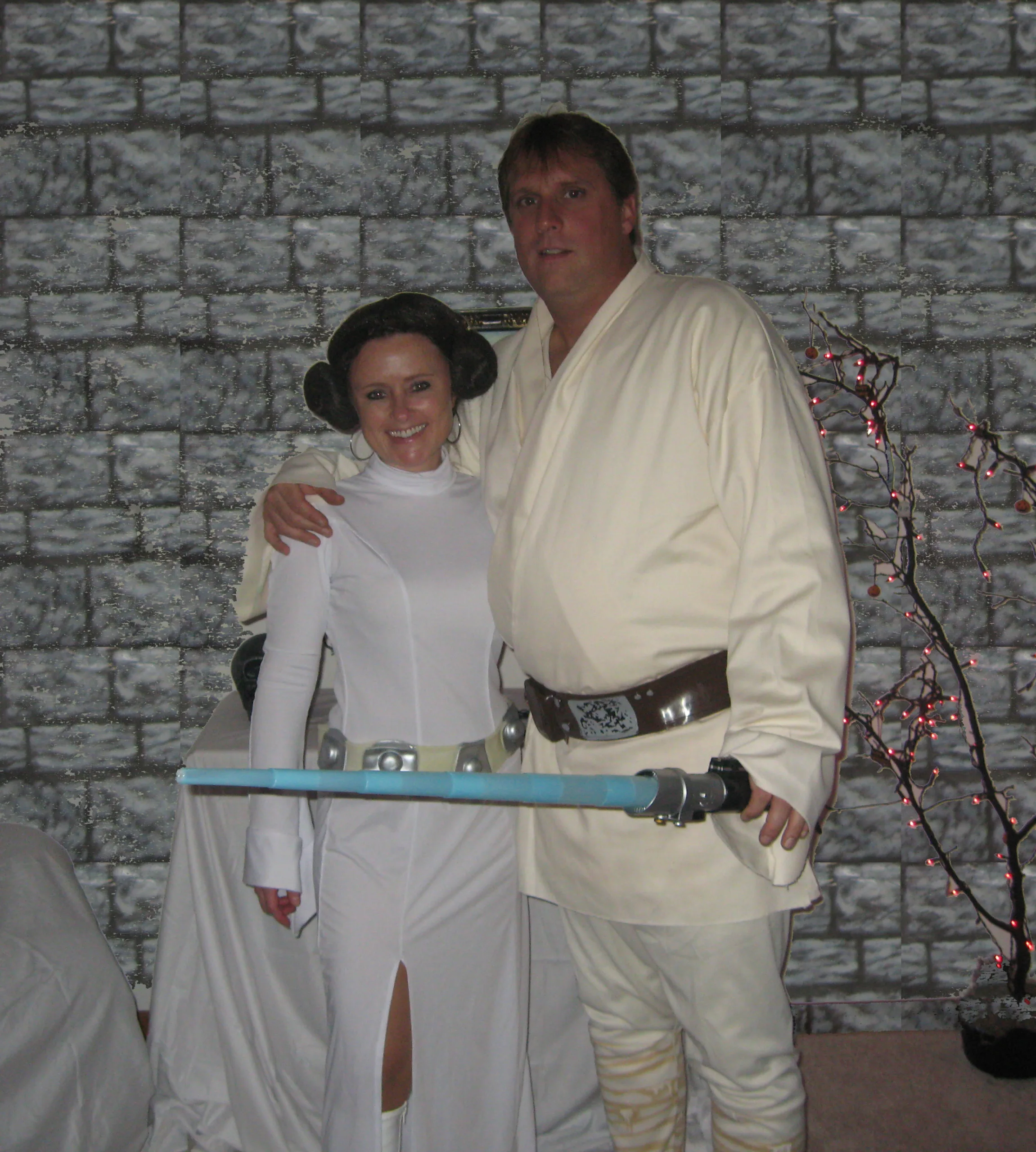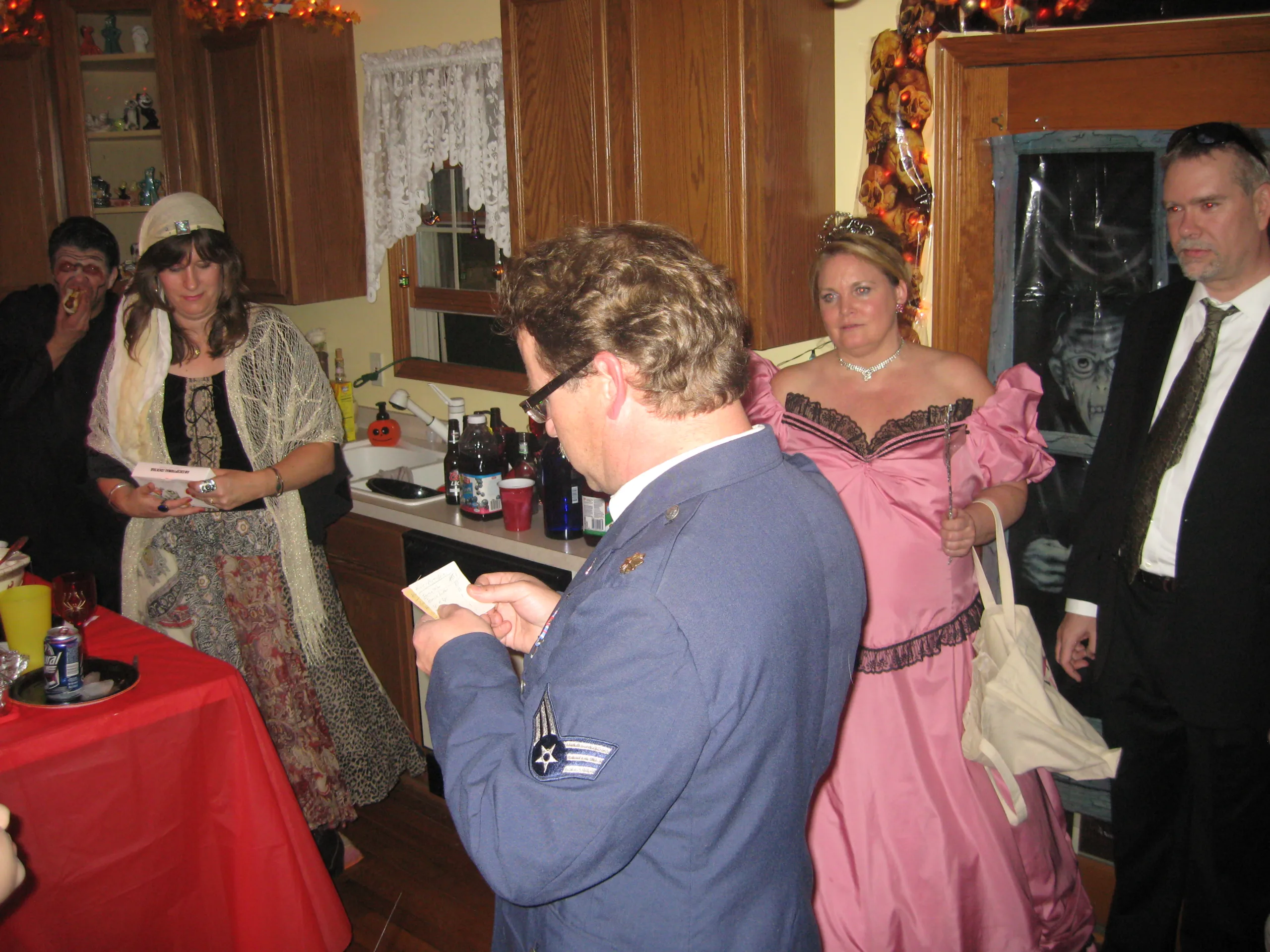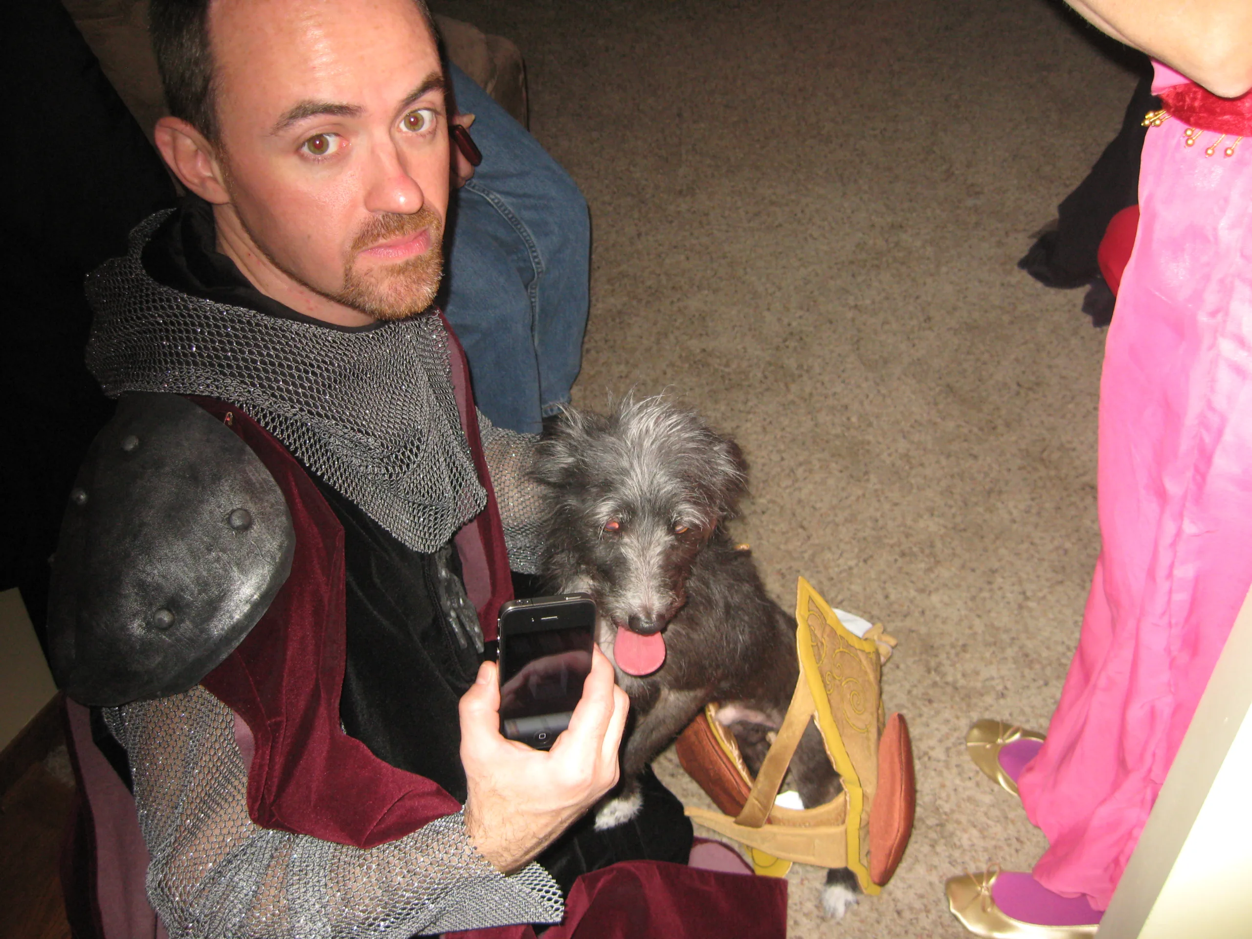 Our friends Jim & Linda borrowed our dog, Lily to round out their costumes as Doc Martin and Morwenna.