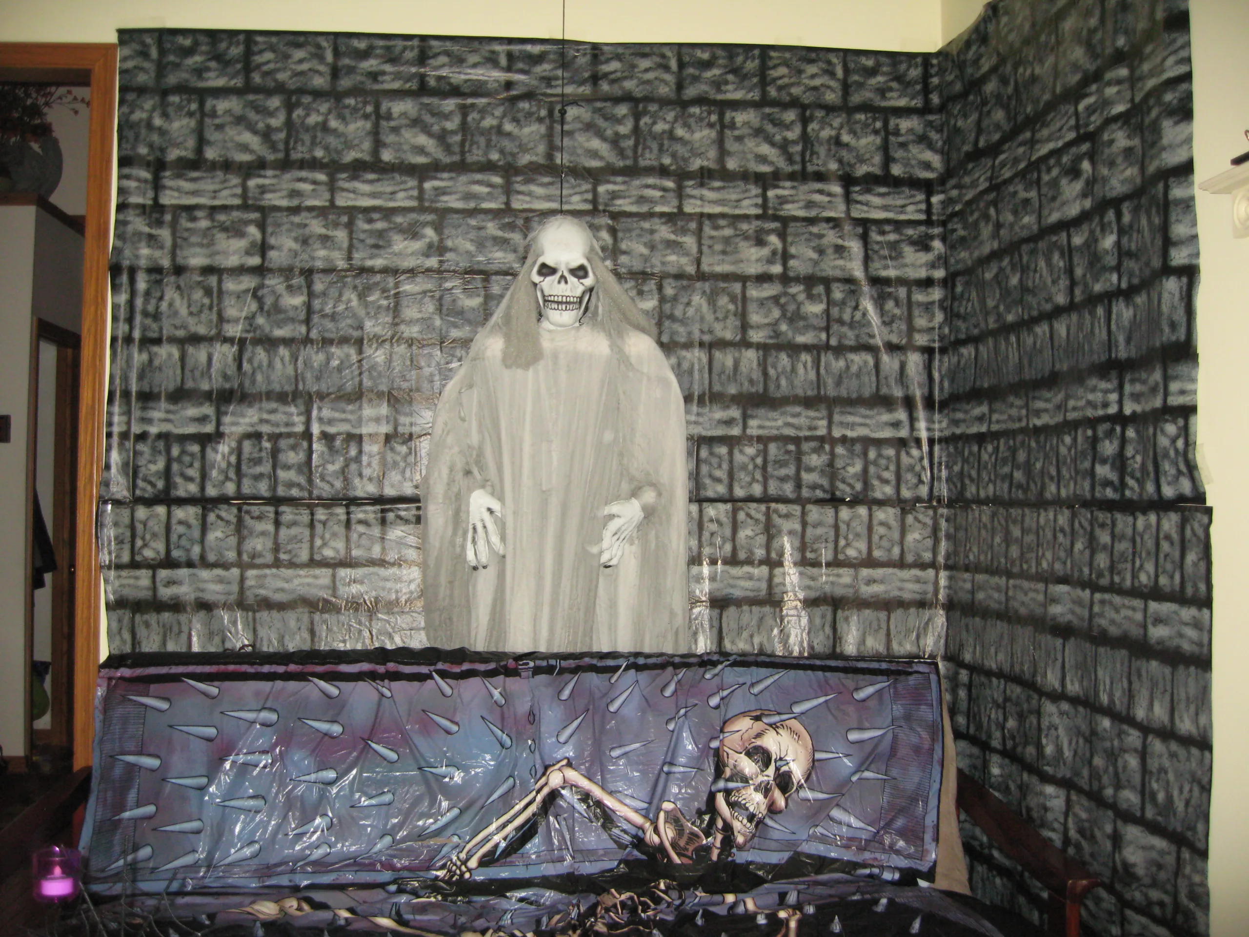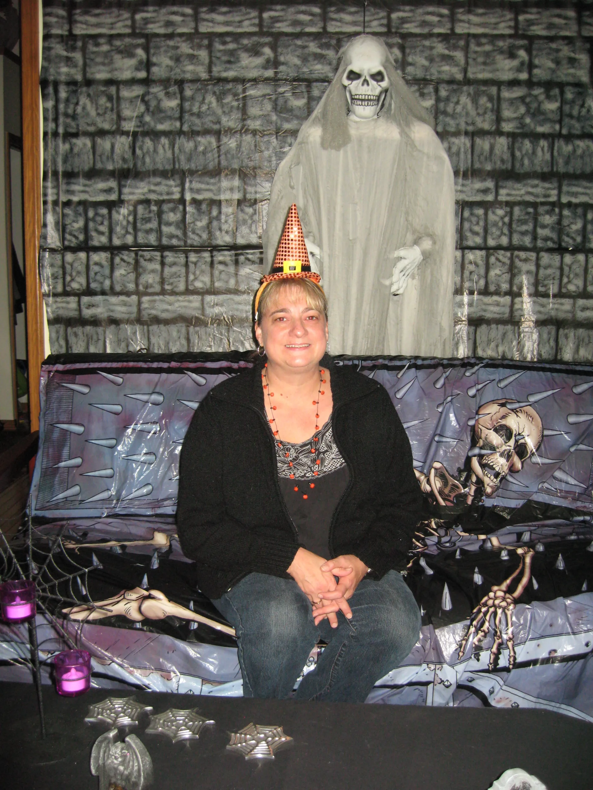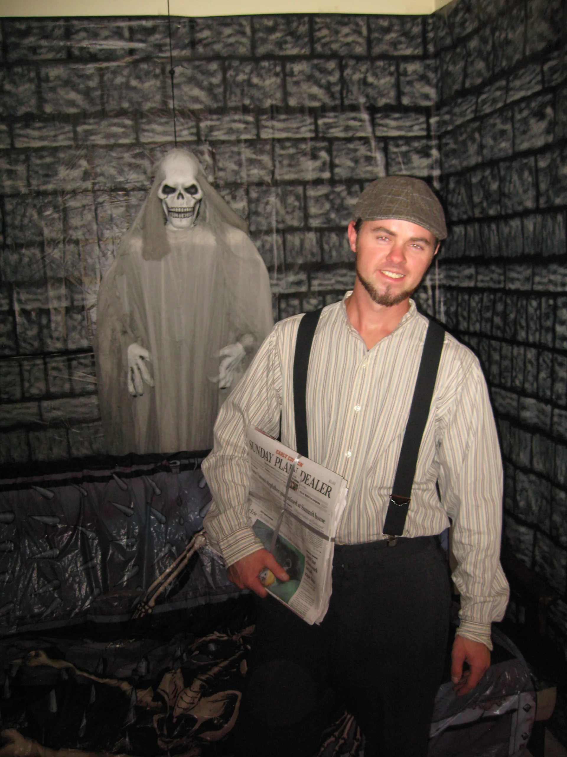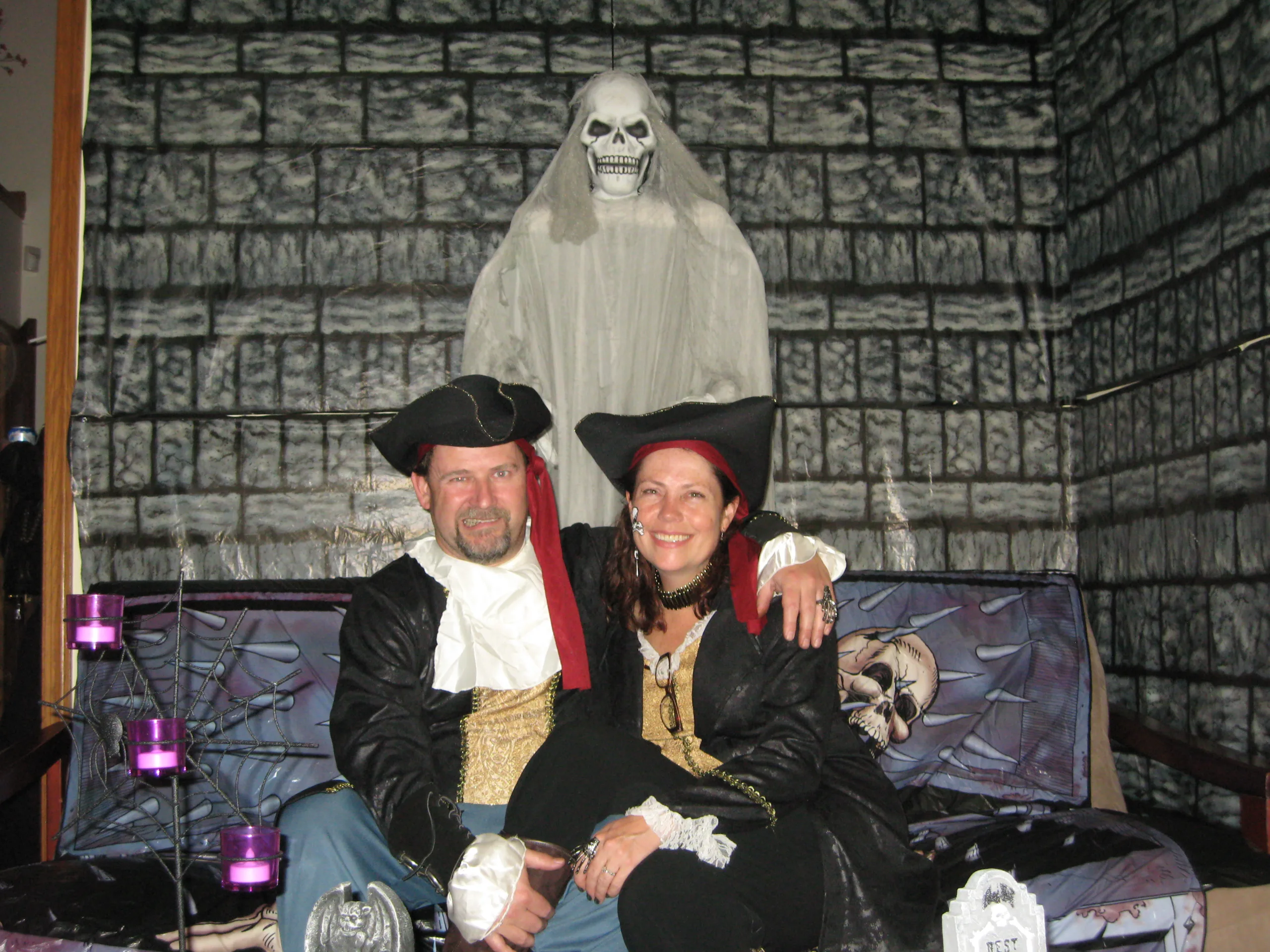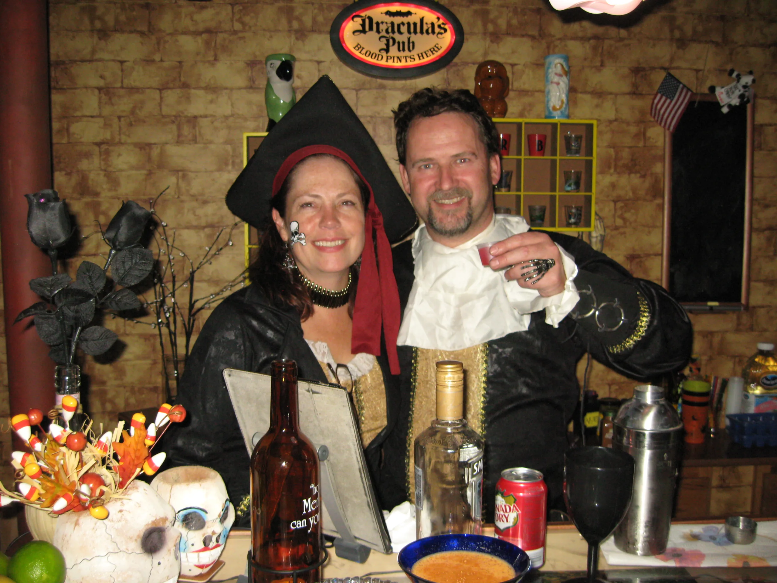 We dressed as Boy Scout and Girl Scout this year. We setup a bar on the deck, which made it a little easier to manage instead of running downstairs all night. We had some cancellations due to sickness, but still had 50 people show up!