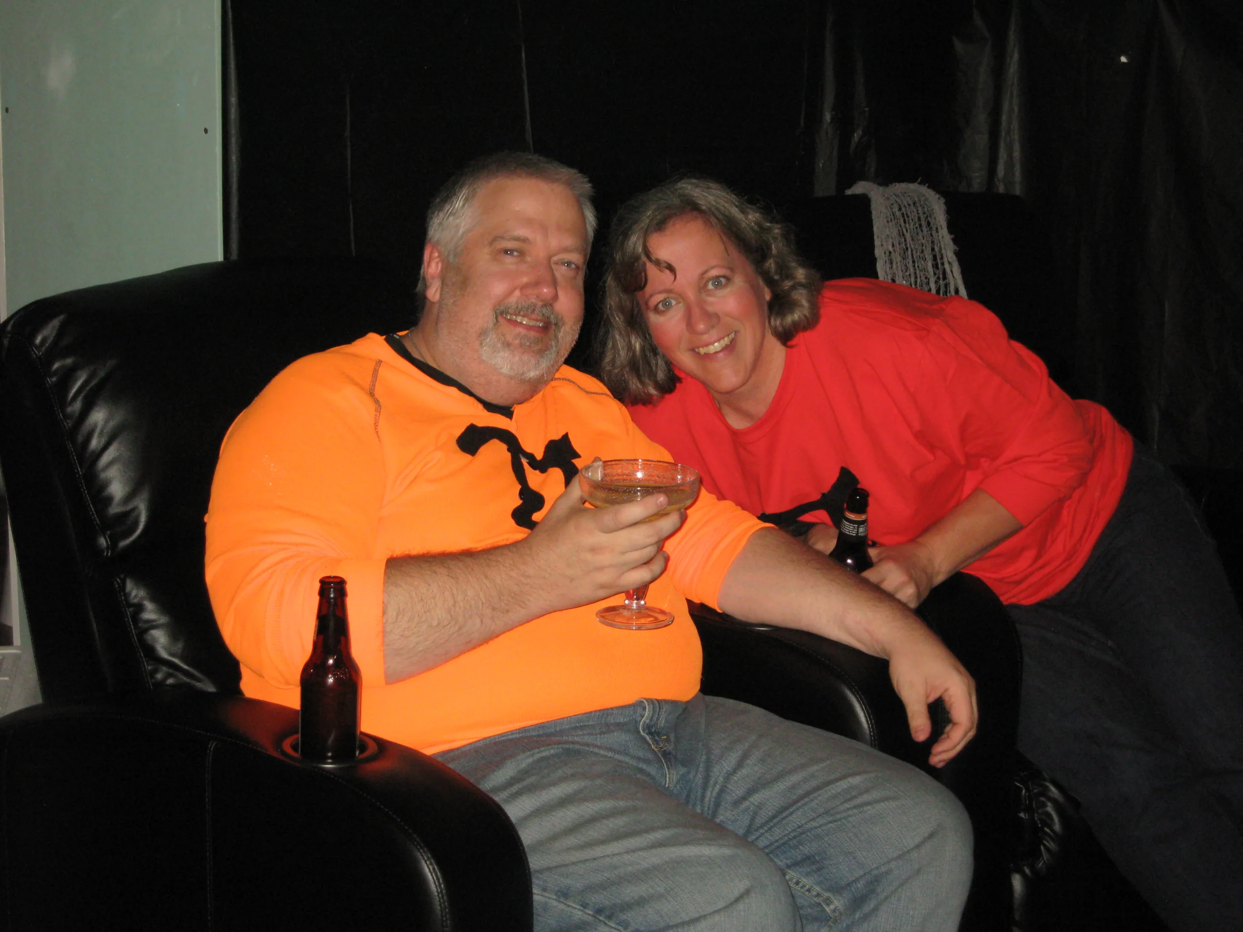 For Darren & Denise’s party, we wore matching skeleton costumes with hoods, so it took people a bit to figure out who we were 🙂