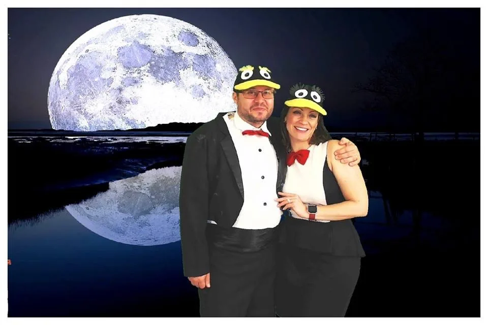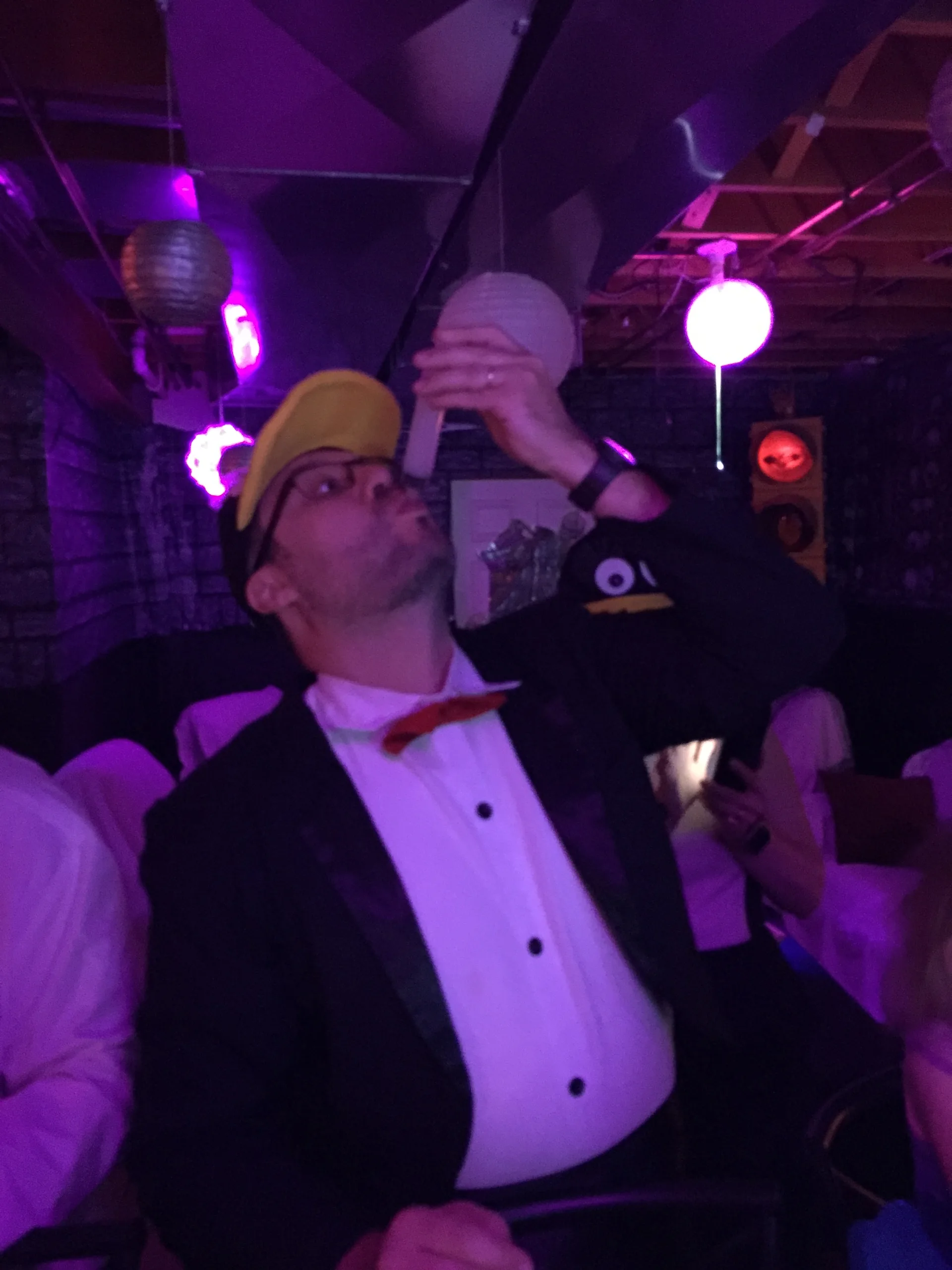 For Darren & Denise’s party, we wore matching skeleton costumes with hoods, so it took people a bit to figure out who we were 🙂