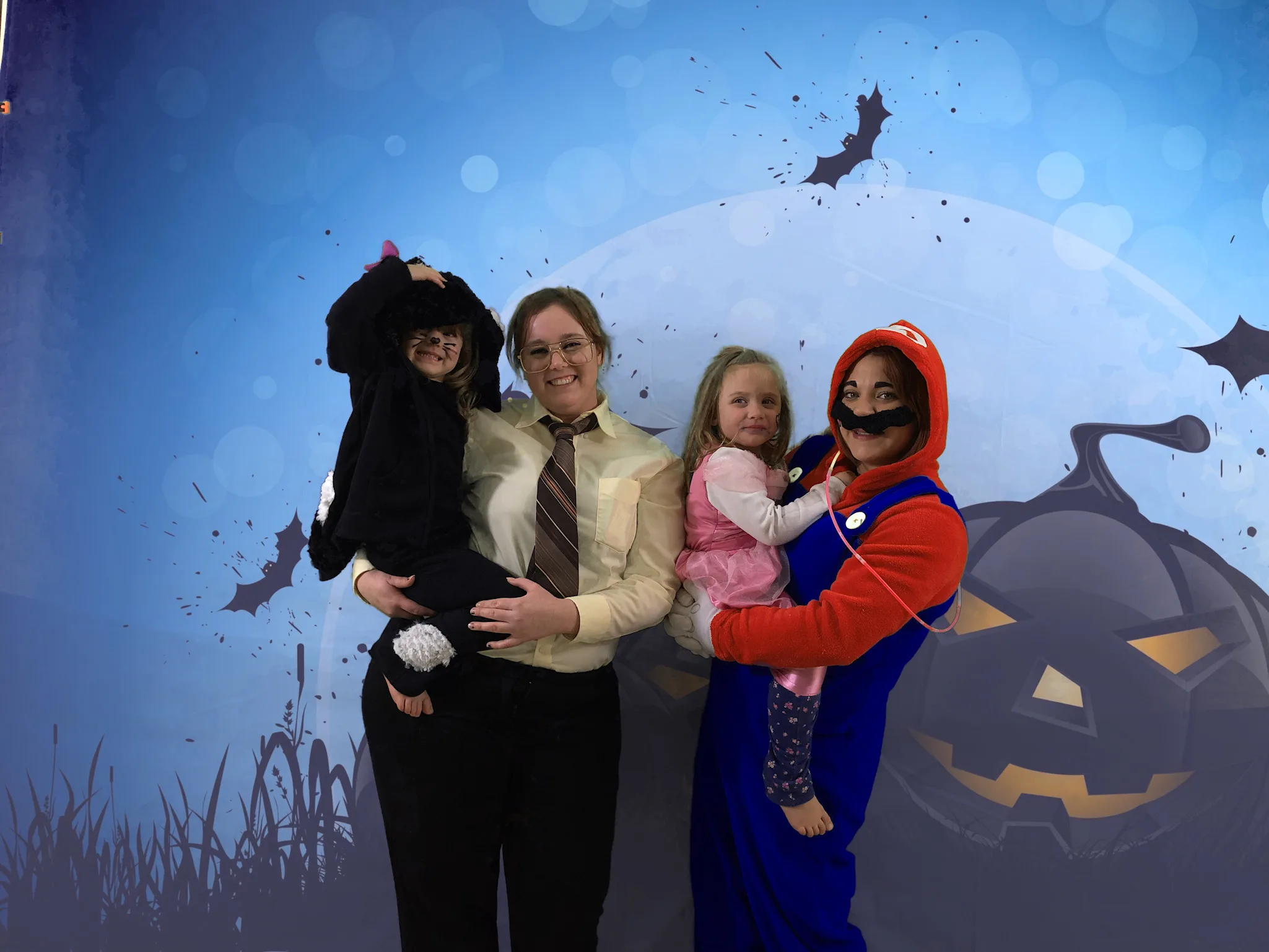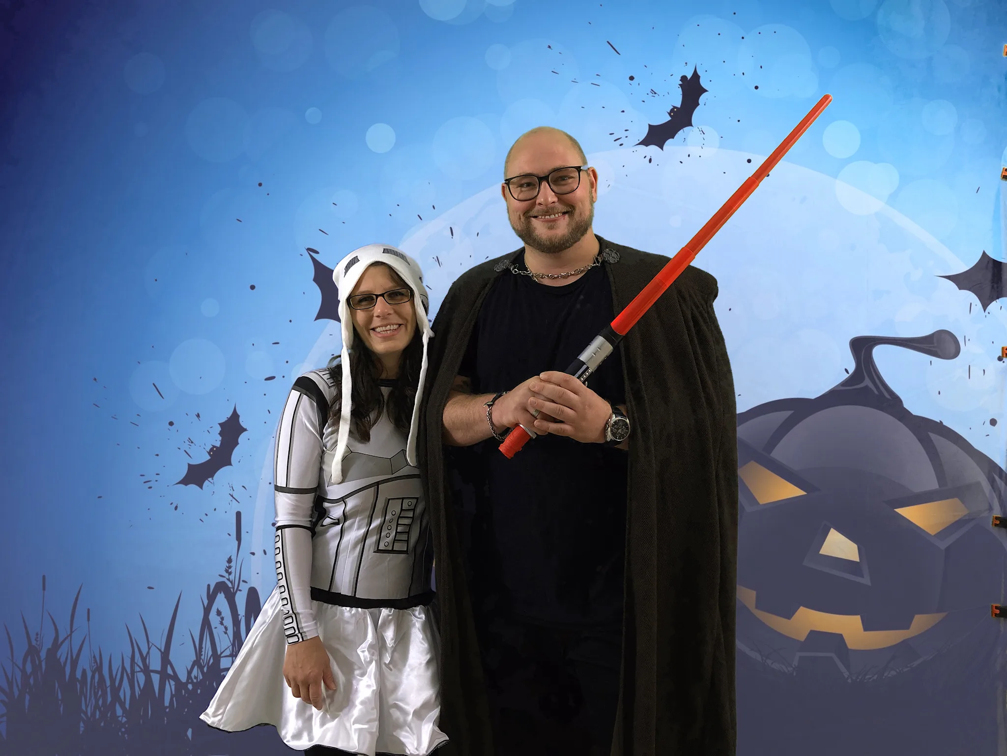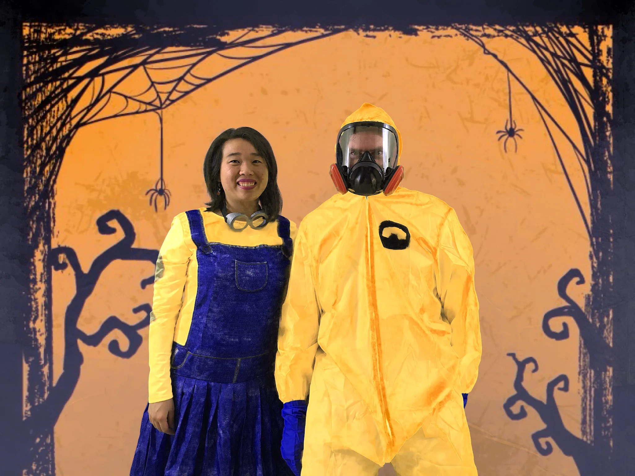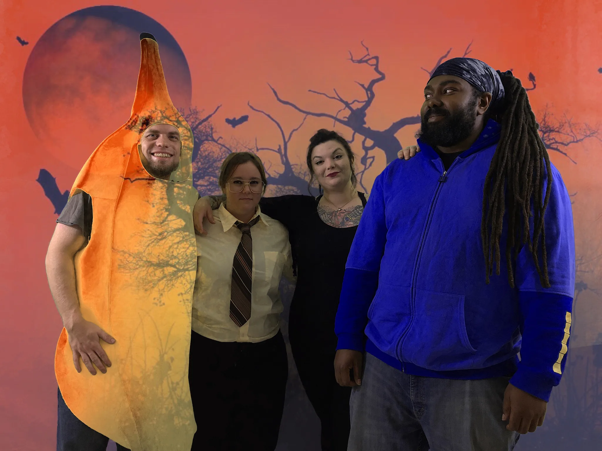 Lots of great costumes! Took me awhile to figure out who “Pat” was! John and Chris were both walking around all night with huge boxes over their heads for their costumes.