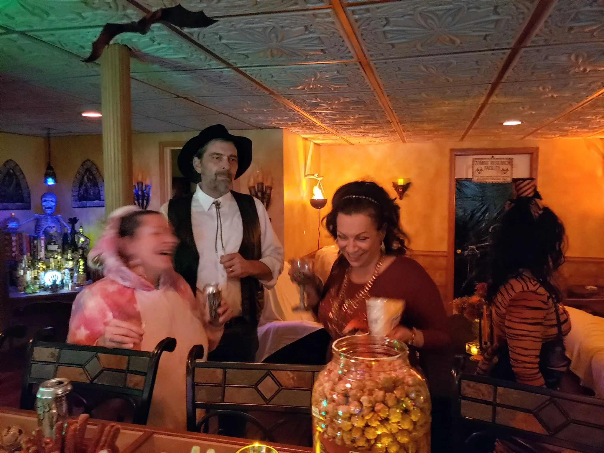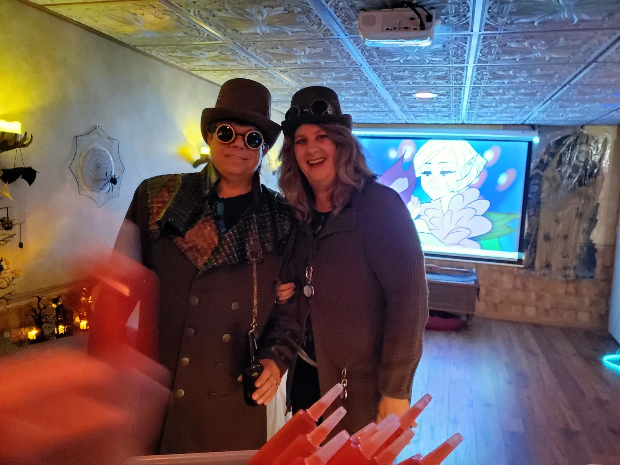 We dressed as Boy Scout and Girl Scout this year. We setup a bar on the deck, which made it a little easier to manage instead of running downstairs all night. We had some cancellations due to sickness, but still had 50 people show up!