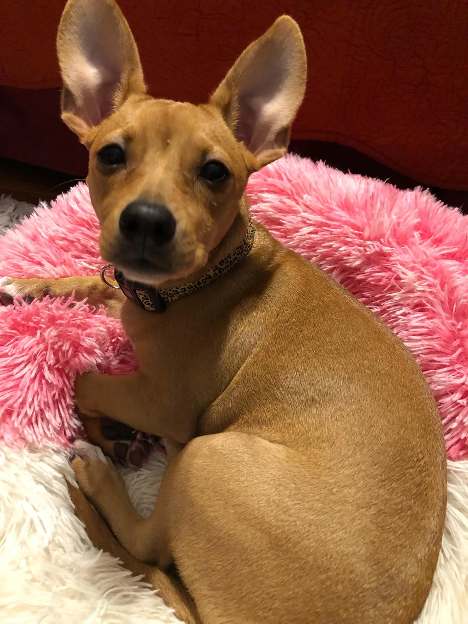 Pepper’s mom says her darling Pepper is a whopping 50 lbs. and the most sweetest angel!!! She says she learned from Pepper what innocent 😇 souls look like-she has only love and joy. Not a mean bone in her body.