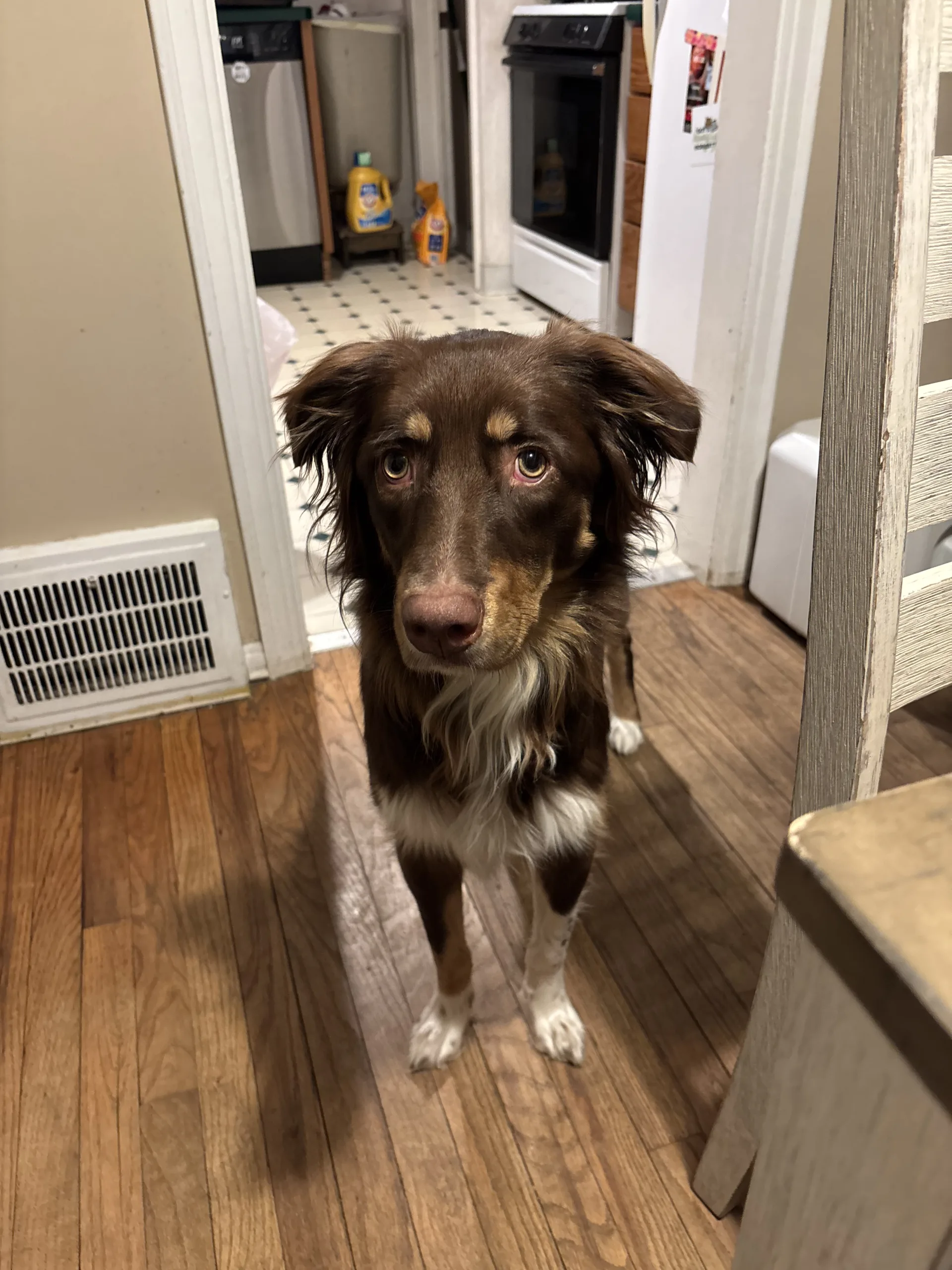 Kobi’s mom says he is a he is a super happy dog who loves life! He loves going on nature walks and going to the river, he’s a pretty good swimmer!! He loves the car, meeting people and other dogs. He’s the perfect dog and they love him. ❤️❤️ He weights 80 lbs!!