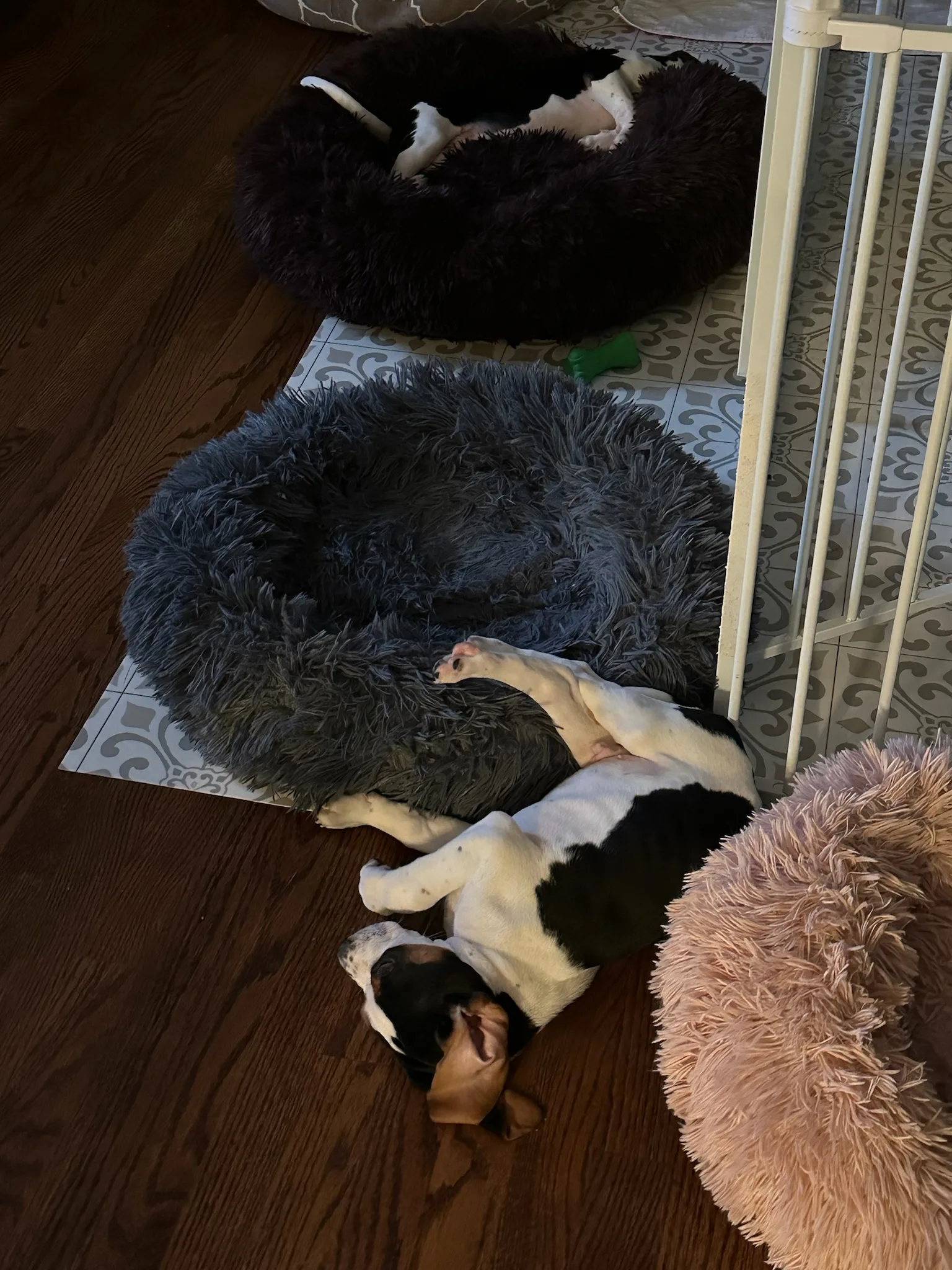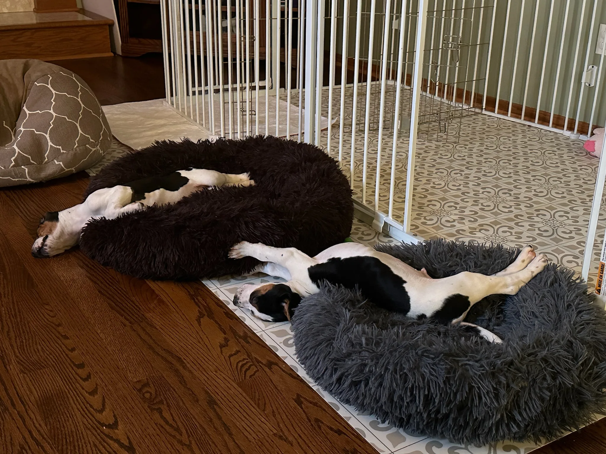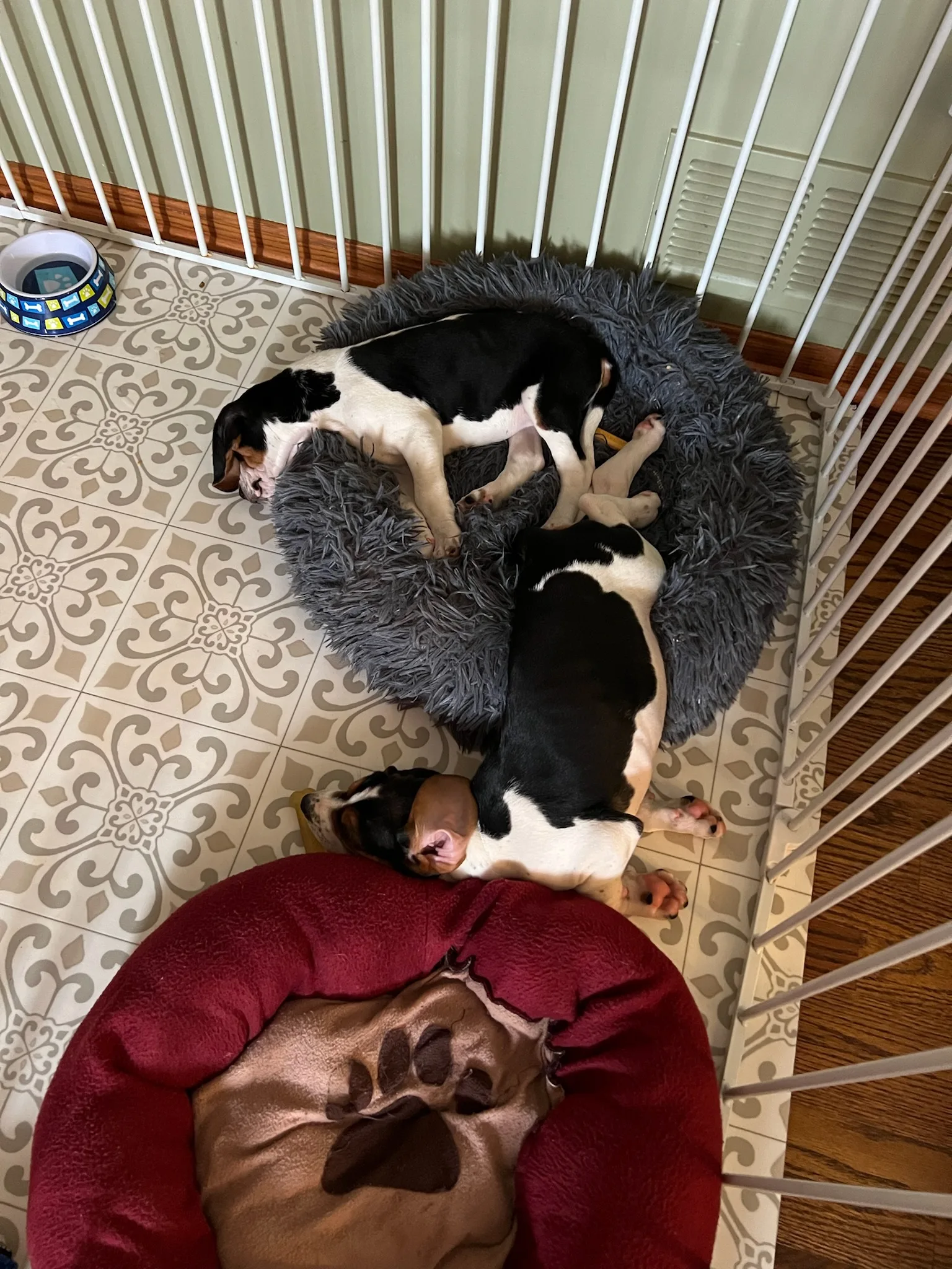 The first picture below is of Charlie and Dexter on their way to our house. In the video, Dexter is trying to figure out how to use the dog bed. 🤣 They were such cute puppies. We think they are a Hound/Beagle mix. They are goofy and clutzy and have the cutest faces!