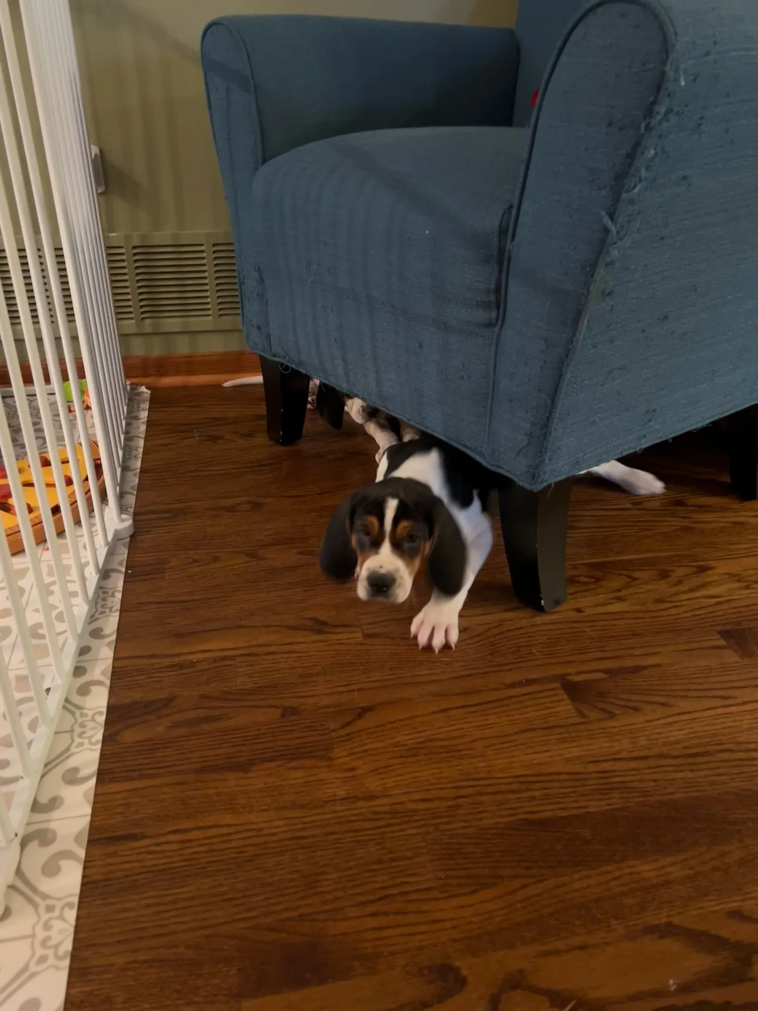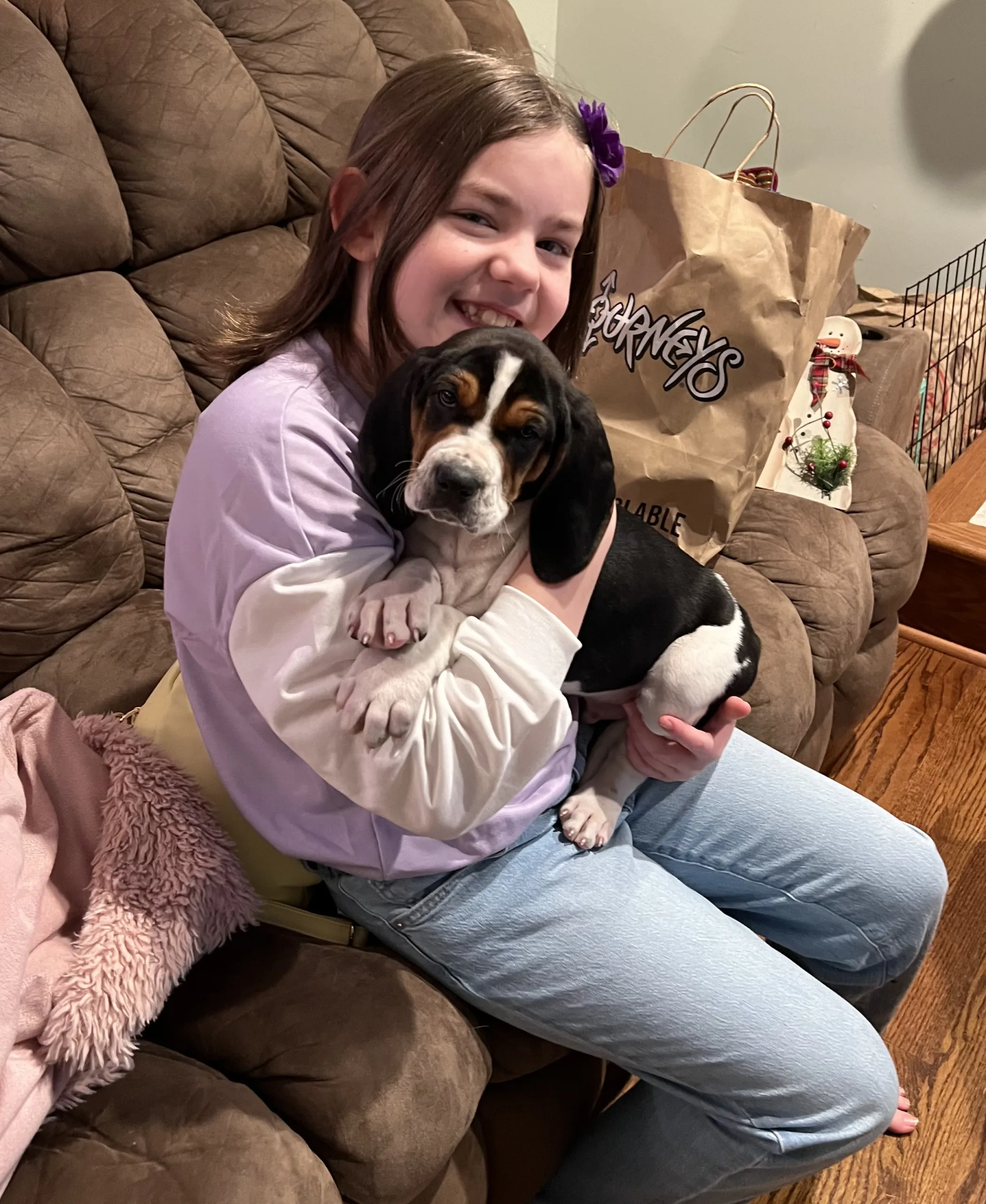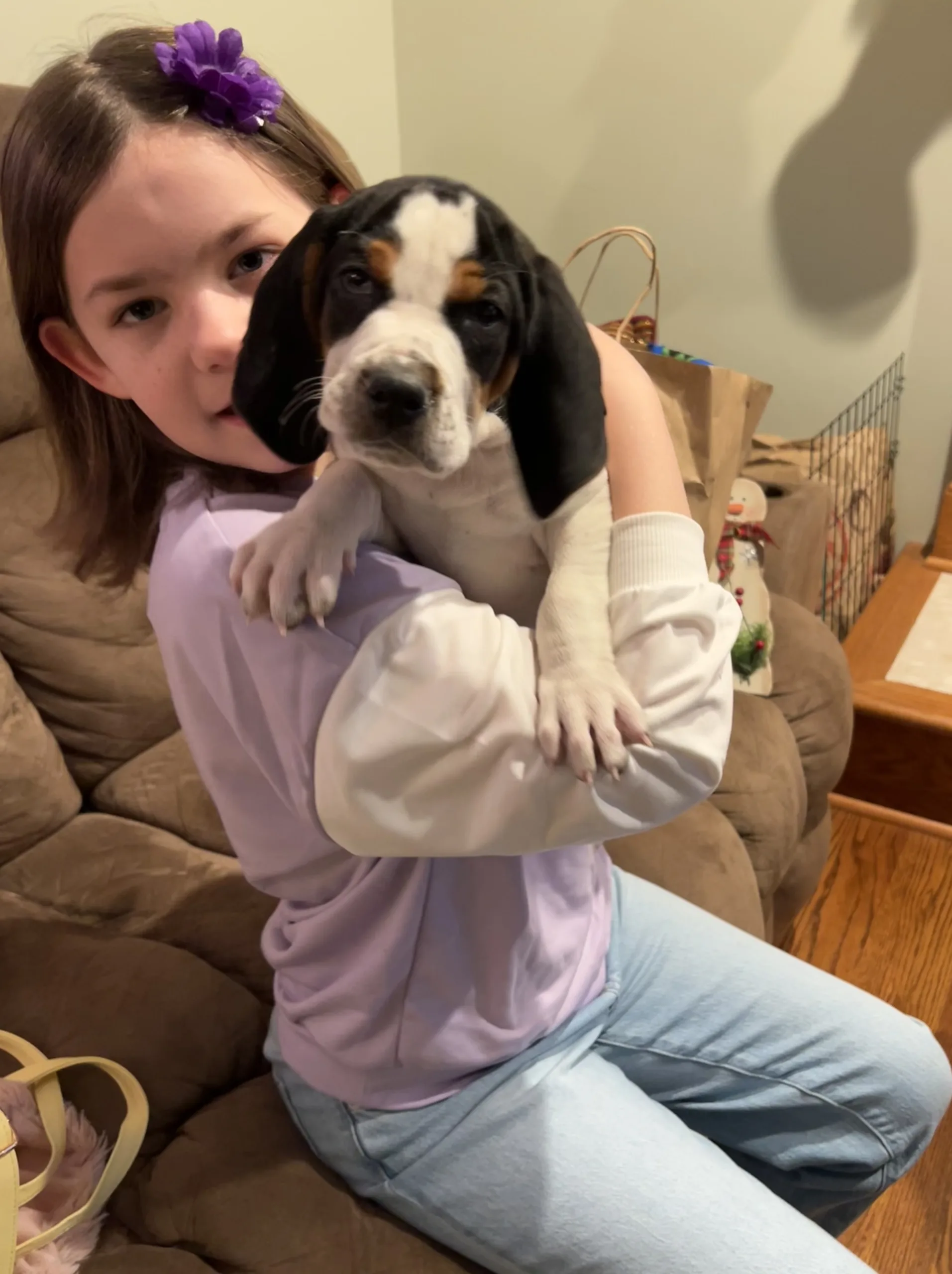 The first picture below is of Charlie and Dexter on their way to our house. In the video, Dexter is trying to figure out how to use the dog bed. 🤣 They were such cute puppies. We think they are a Hound/Beagle mix. They are goofy and clutzy and have the cutest faces!