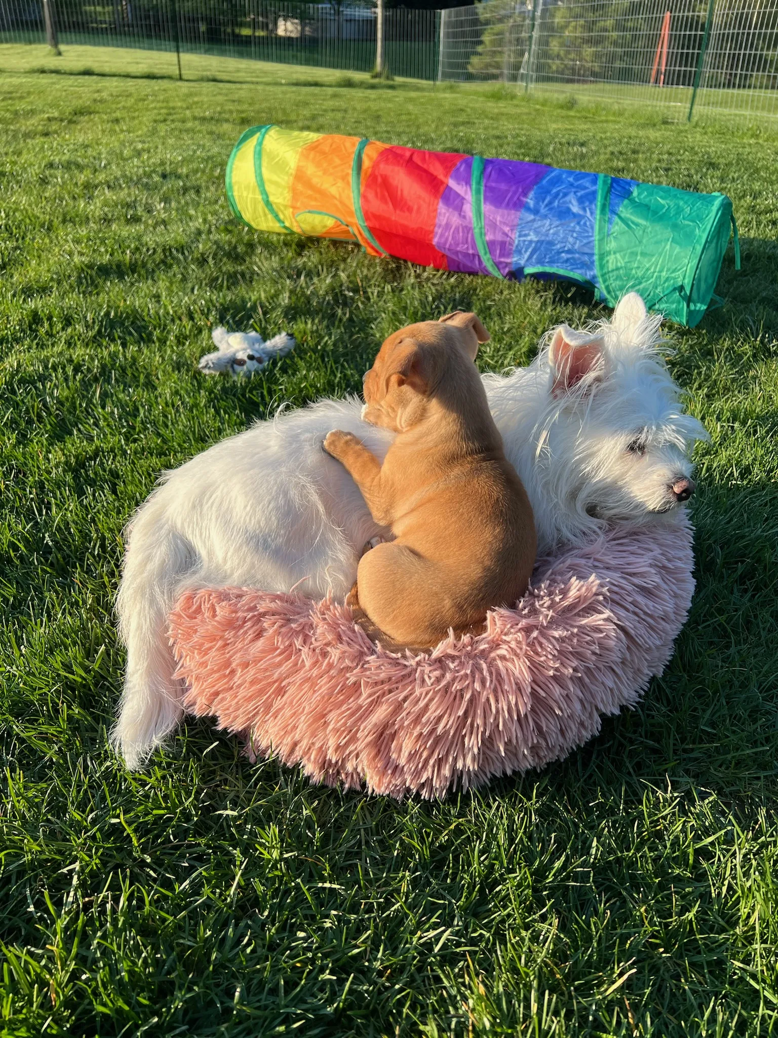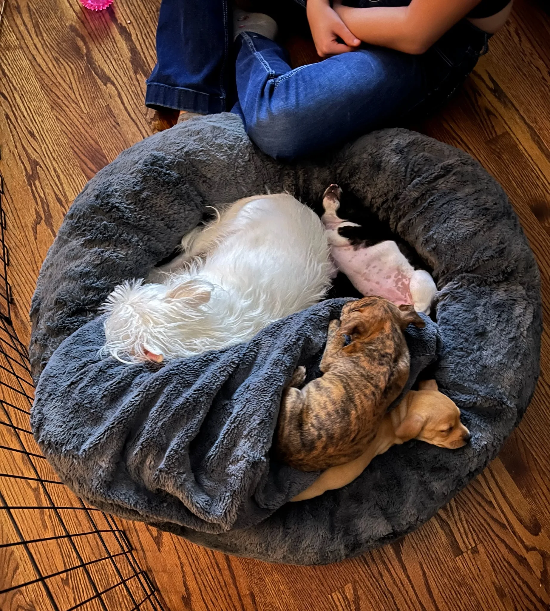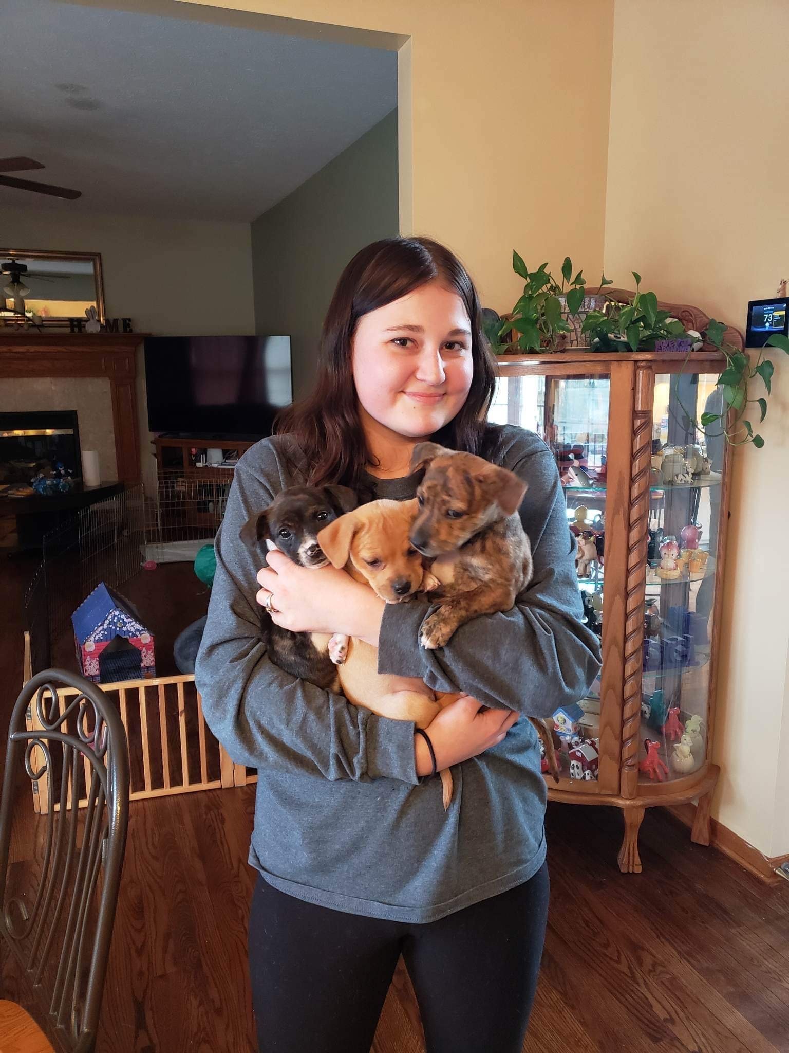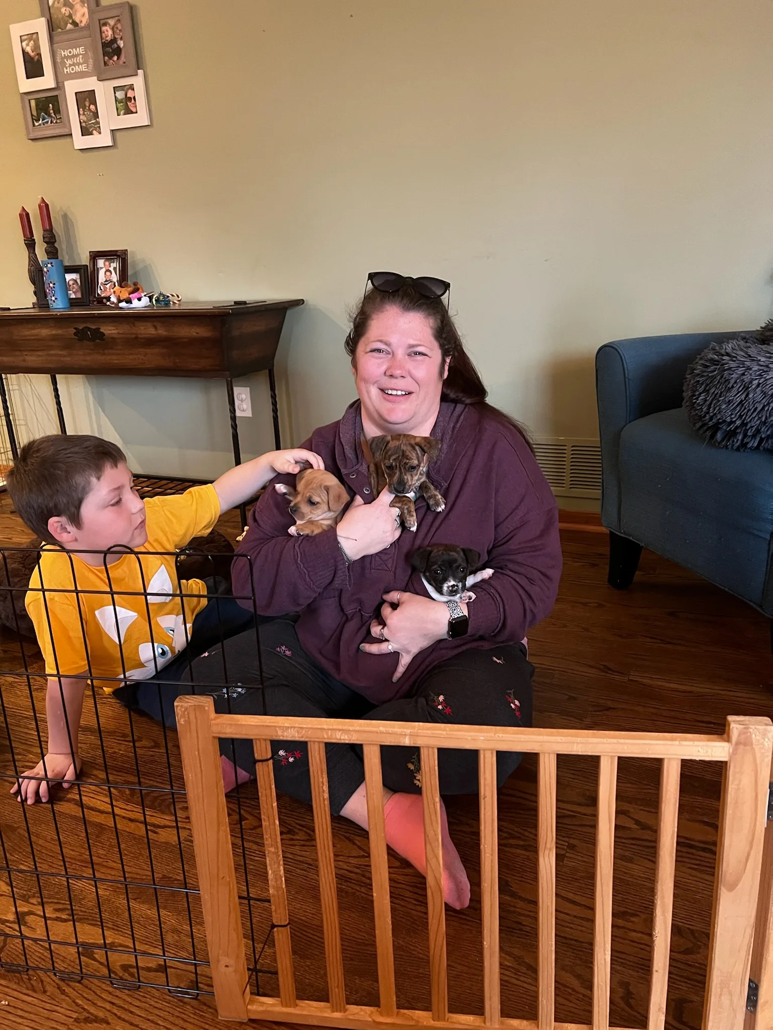 Cocoa, Honey and Graham were adorable little puppies! I helped with puppy transport and brought these 3 home with us on April 23, 2023.