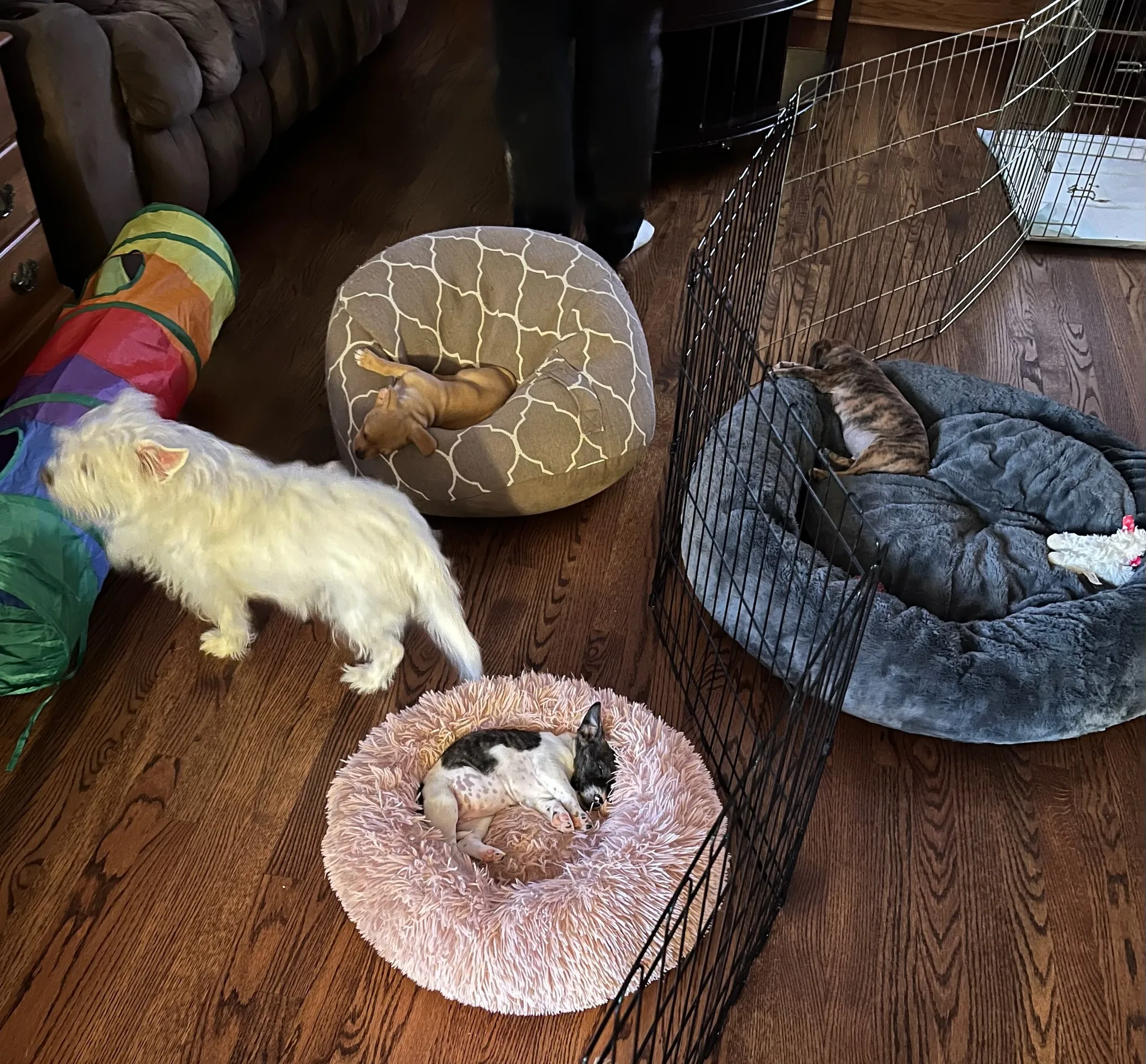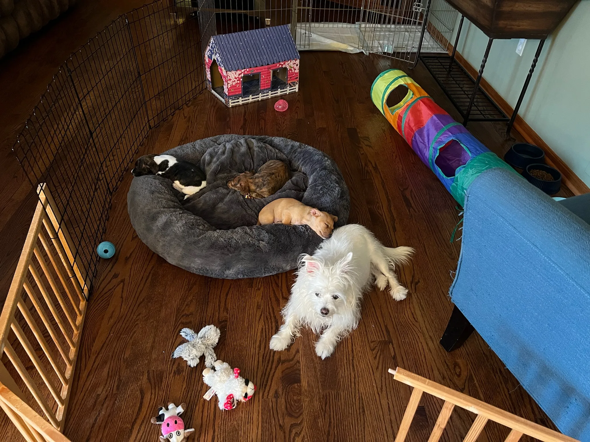 Dani and Jackson were visiting while we were fostering Honey, Cocoa and Graham so they got to snuggle and hang out with the puppies. It was so much fun.
