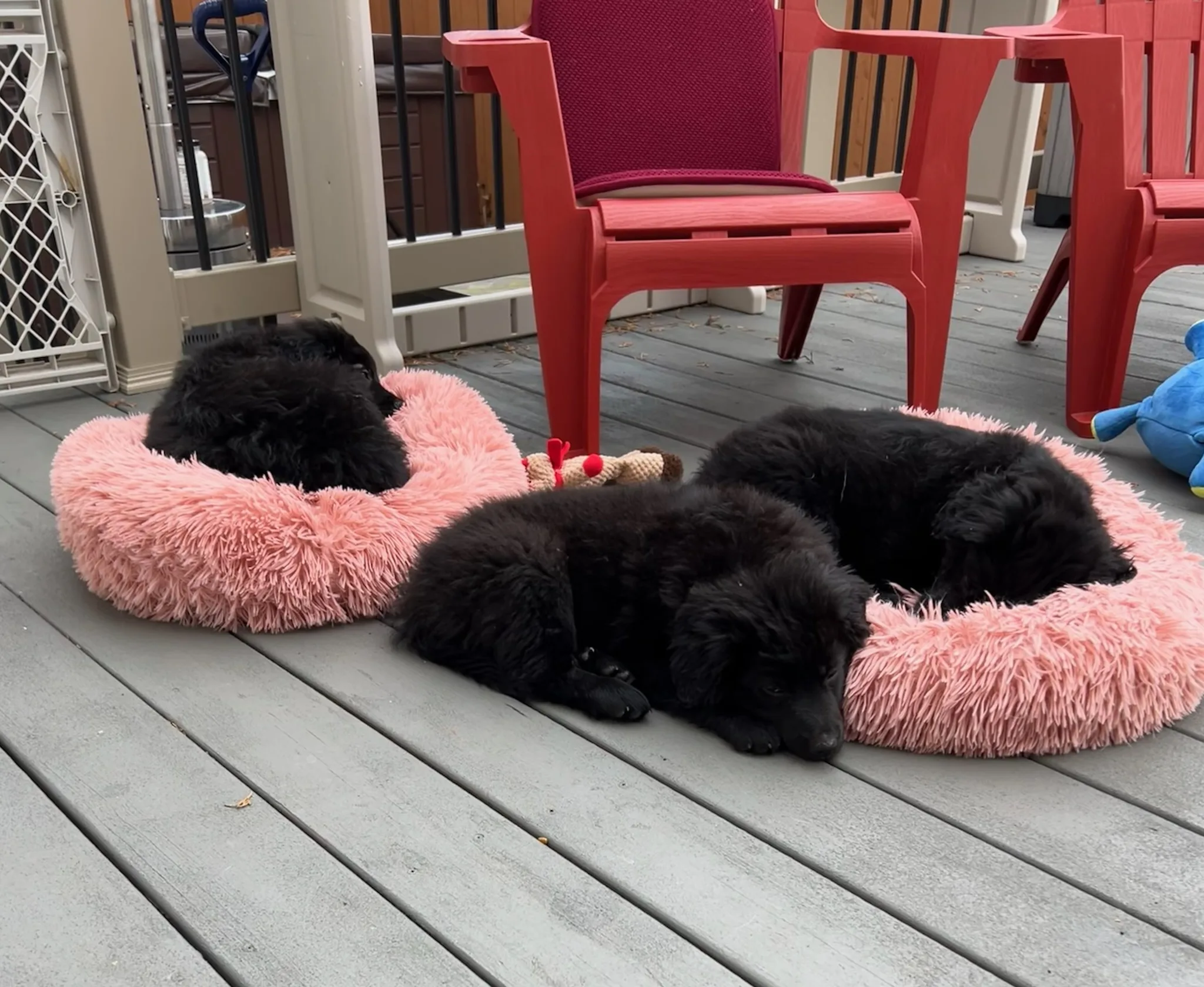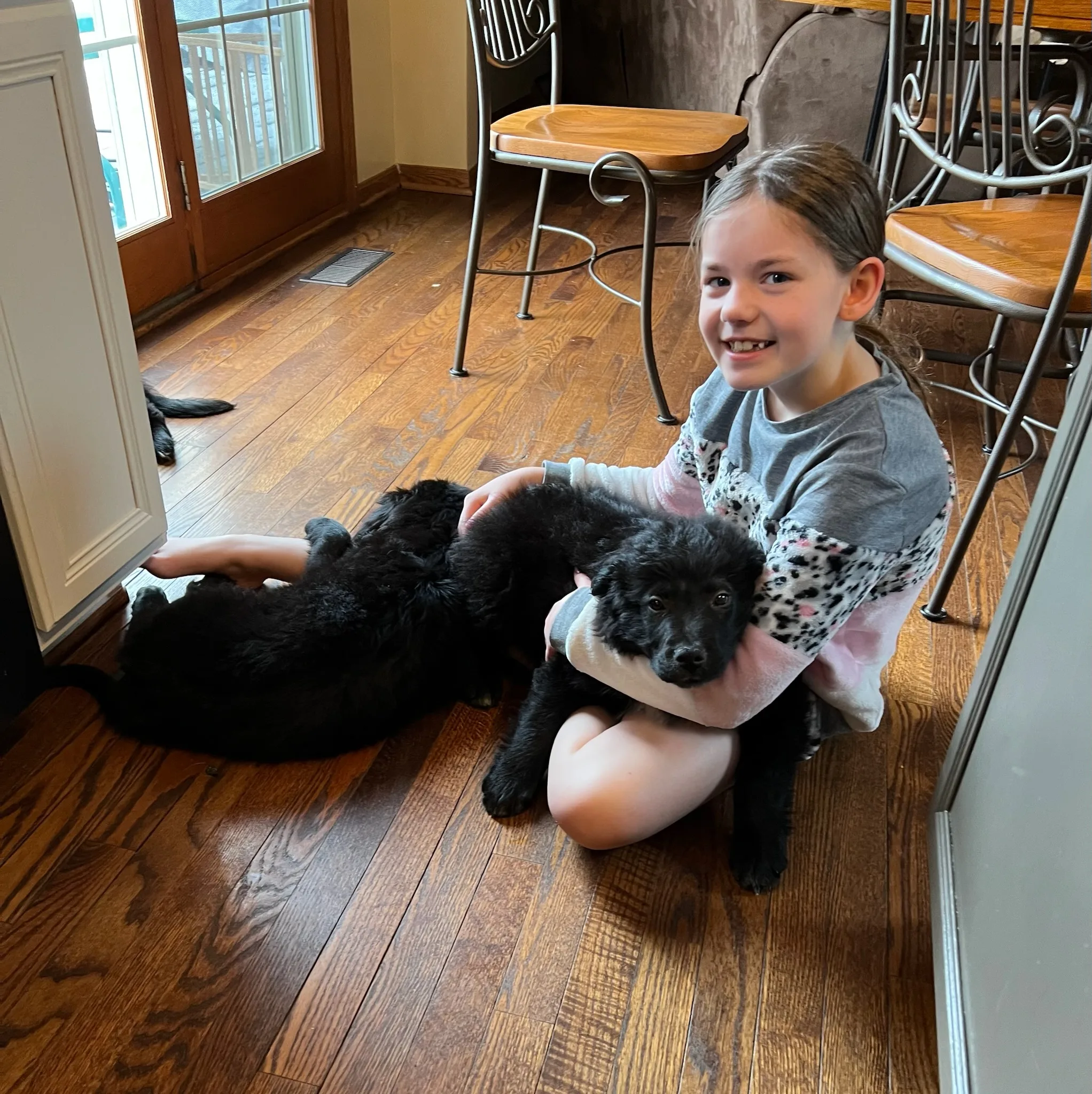 Mia, Tucker, and Lacy are Black Lab/Great Pyrenees mix. They are playful, loveable puppies that will grow up to be big and huggable! They are so fluffy! They loved to snuggle with us even though it made them warm.