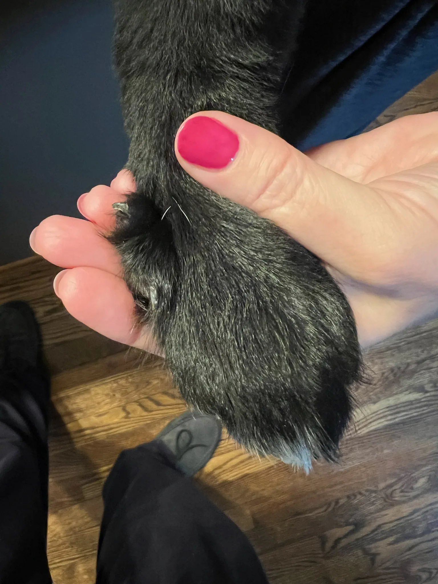 Lacy’s right back paw has 5 toes and her left back paw has six toes. We learned this is a trait of Great Pyrenees. If the extra toes are not connected to the bone they will be removed so they don’t get caught.