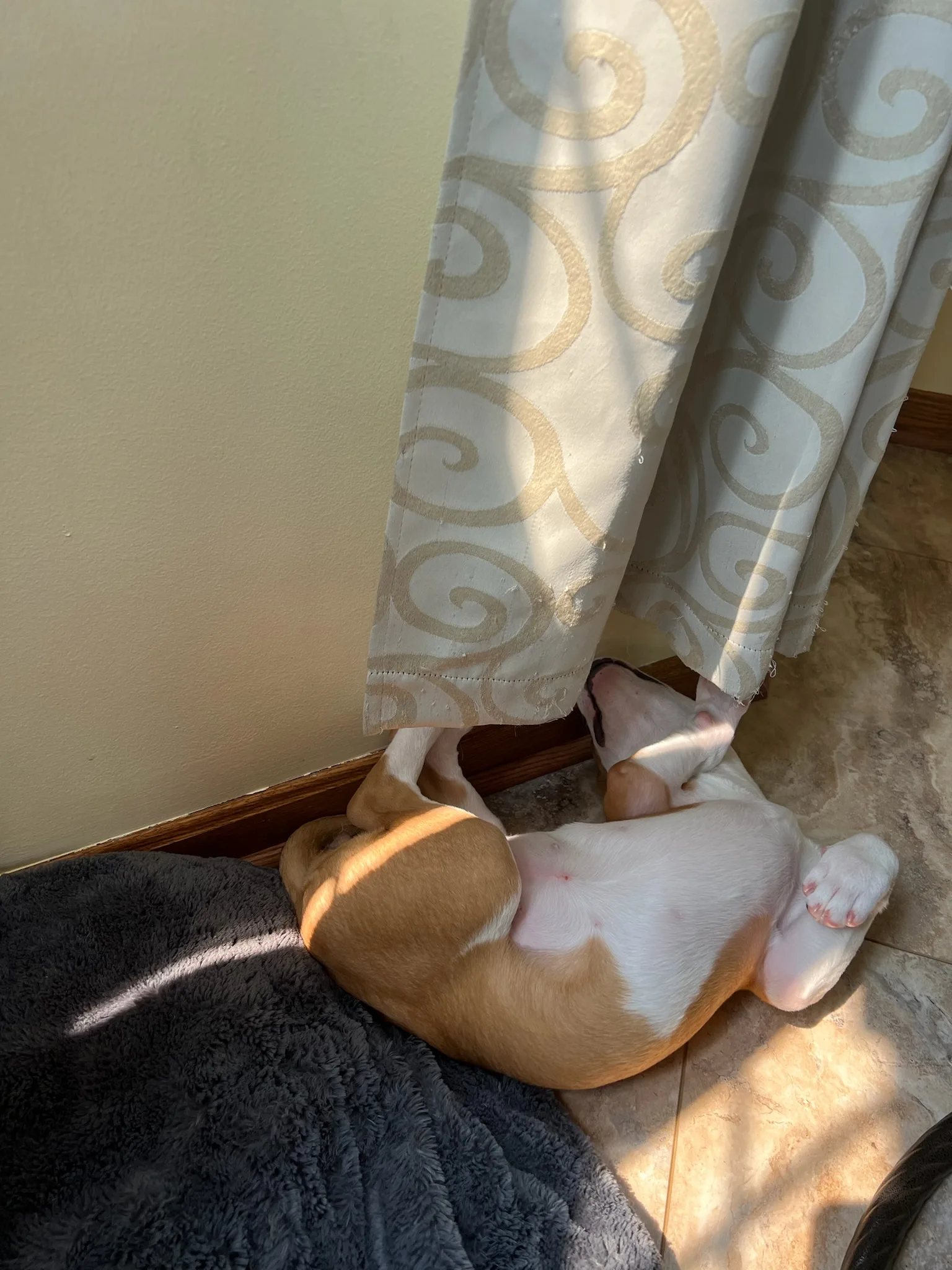 Puppies always sleep in the craziest positions! It just cracks me up. Peanut decided to snuggle up with our dog Lily. Aunt Lily was OK with. She just does not like it when puppies want to play and get in her face.