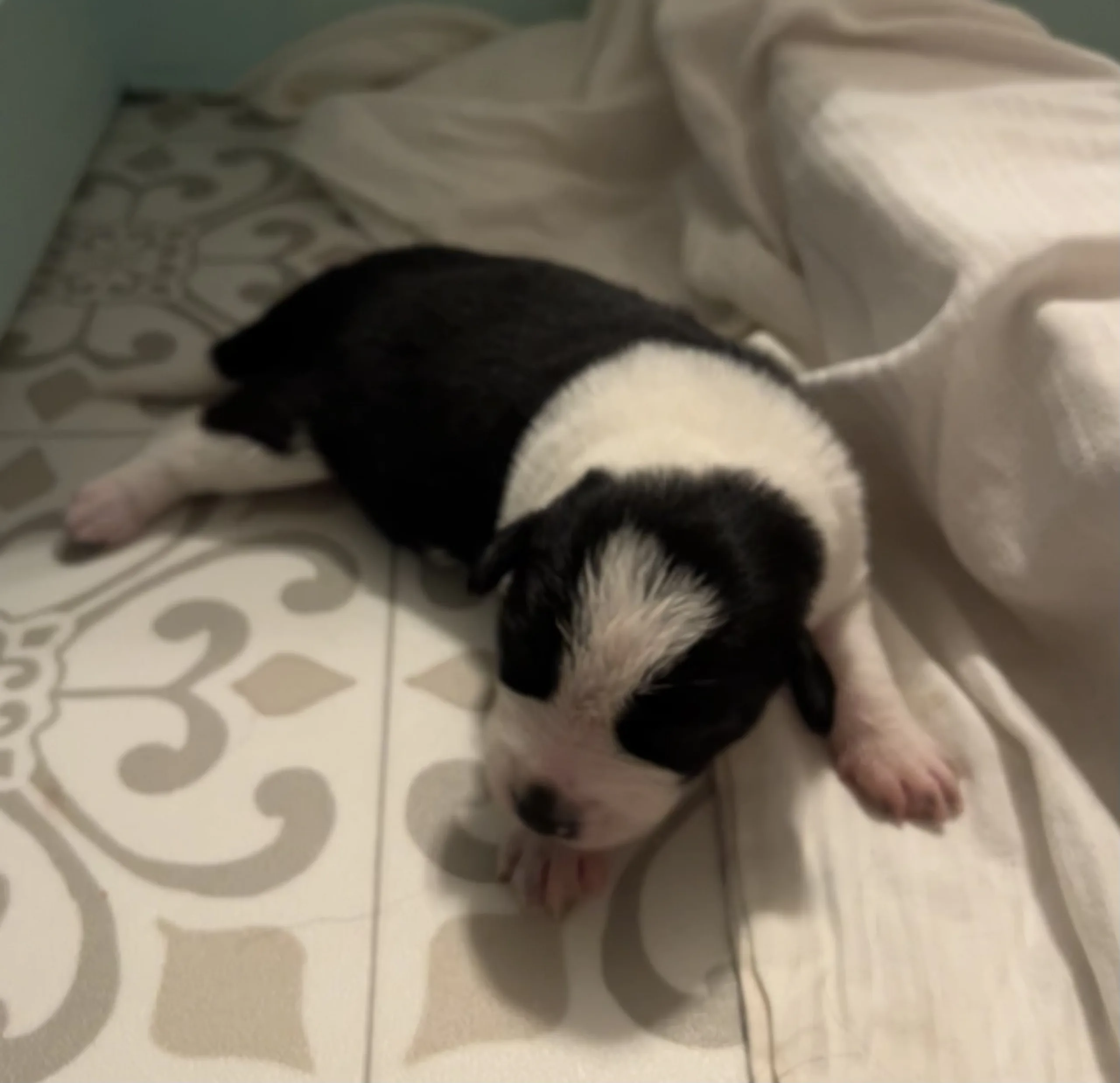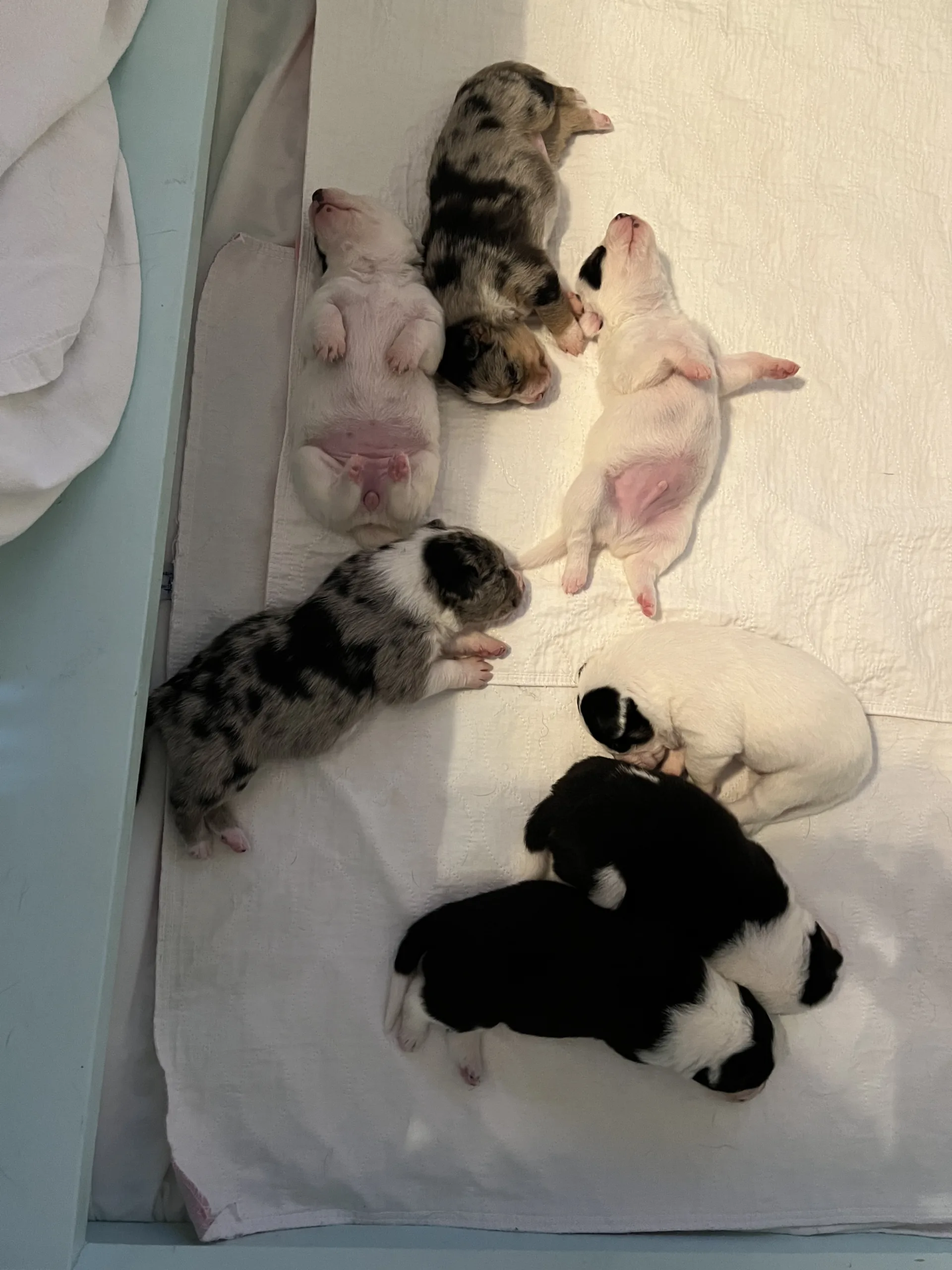 The puppies are just starting to stand up and up move around. They are pretty wobbly!