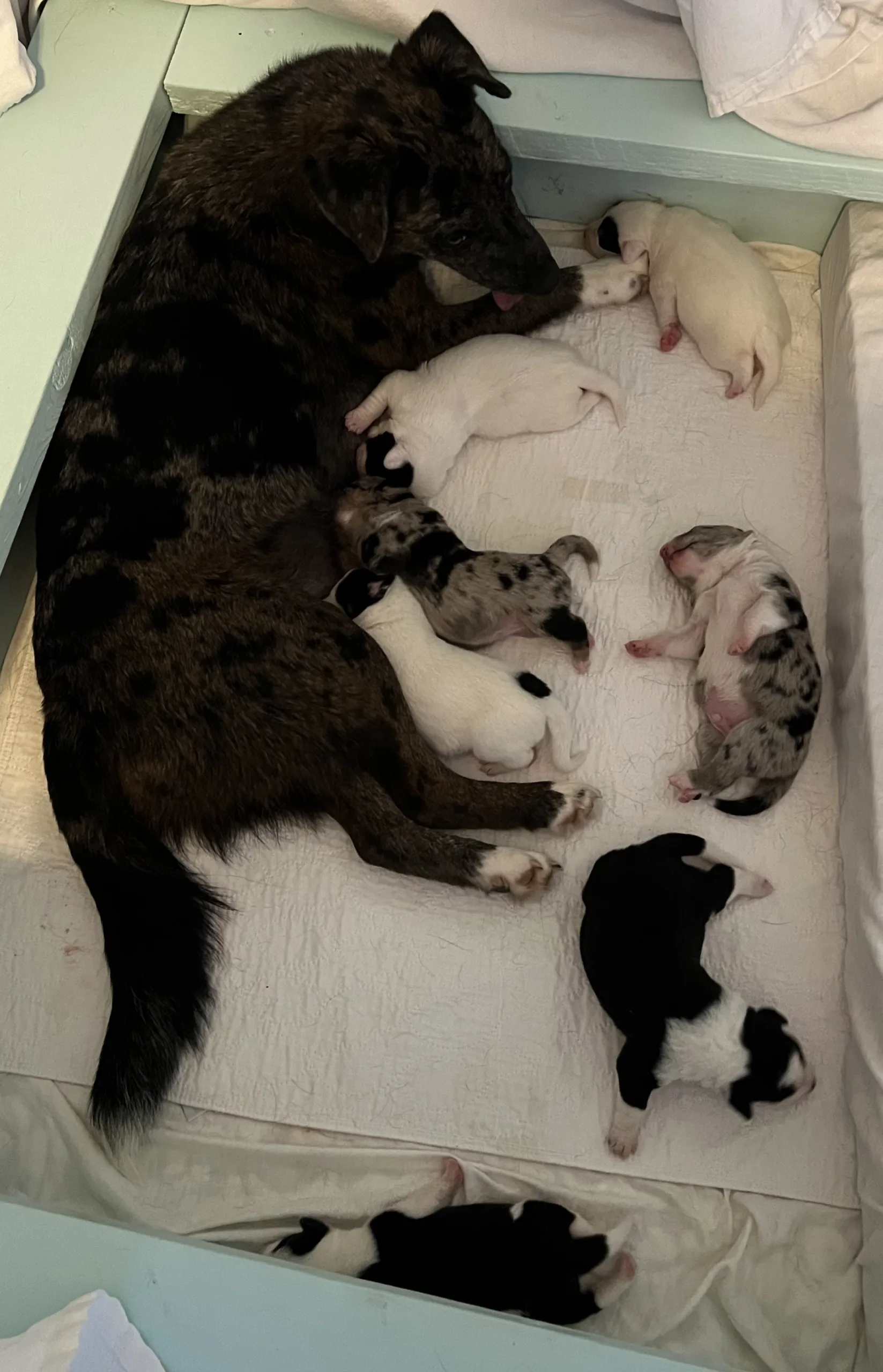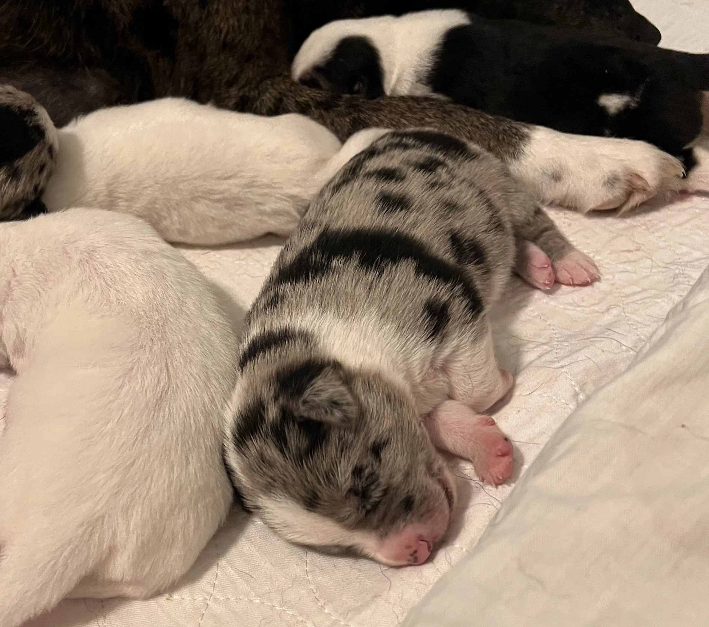 Shyanne’s puppies are changing so fast. They are only 2 weeks old and are already starting to open their eyes and move around. They are still nursing off Mama, so we have not introduced solid food yet.