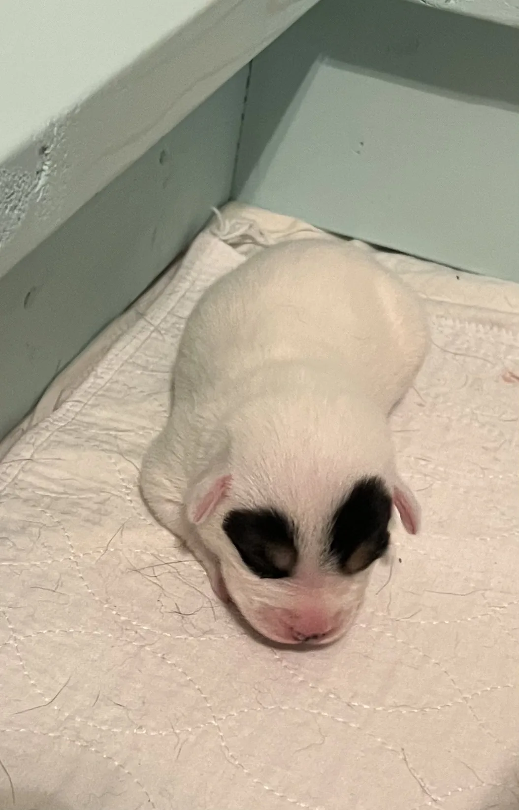 The puppies are two weeks old and are just starting to open their eyes. Some are opening their eyes sooner than others.