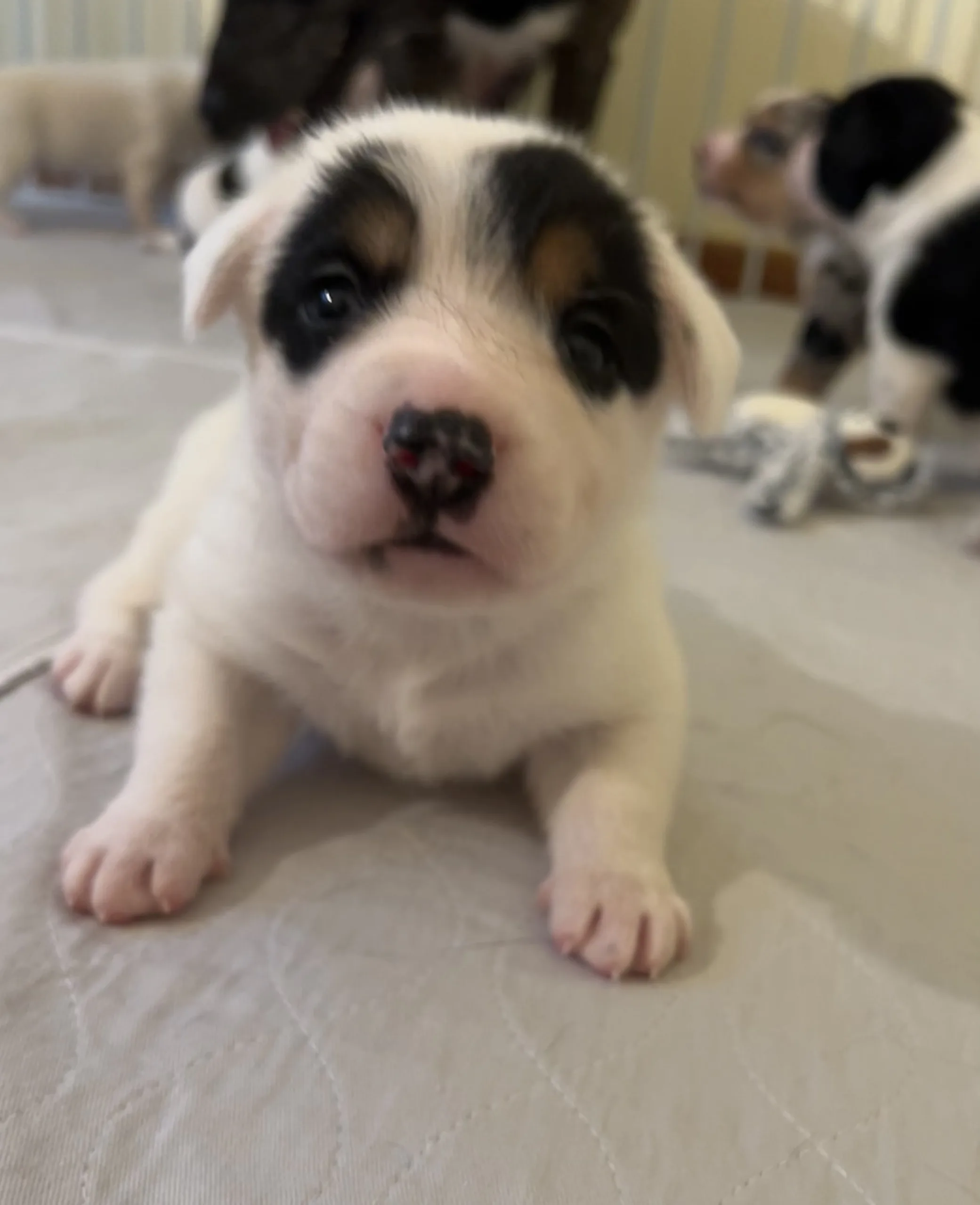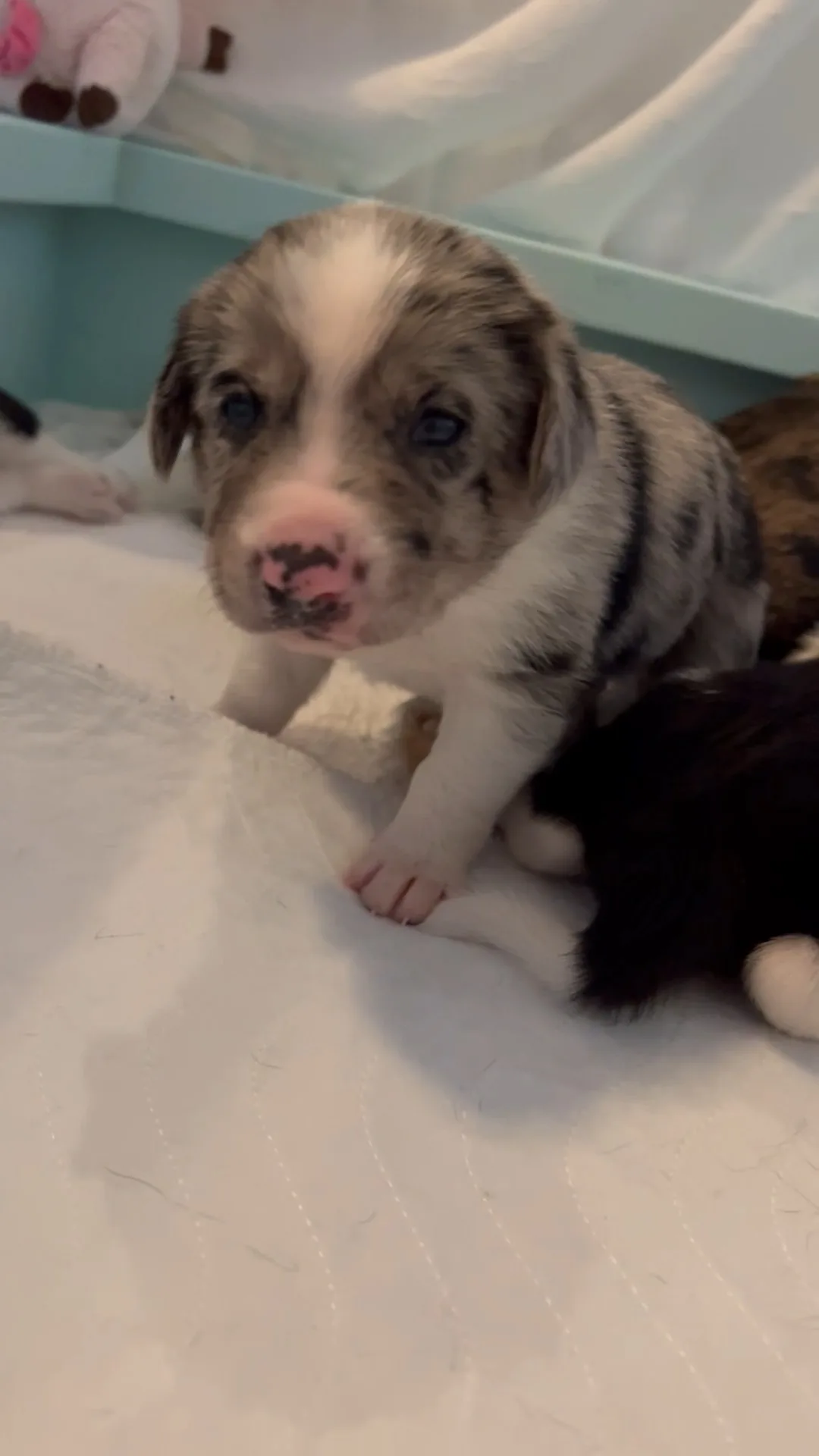 The puppies started to interact and play with toys instead of just chewing on each others faces. It felt like a big step. Growing up fast. 🥹