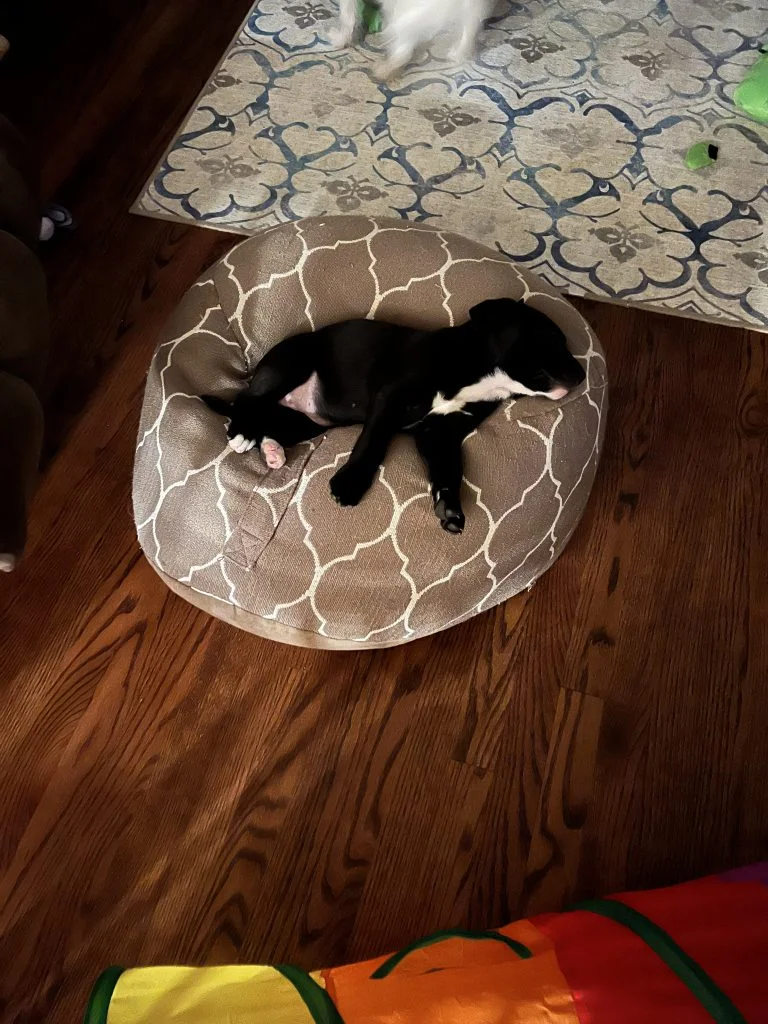 Skylar and Sutton stayed with us from February 9th to February 18th, right before we left for our Disney vacation. Since we had to leave, we transferred these two to another foster to get adopted. They were really good puppies who loved to go on walks, slept through the night and were pretty good about using pee pads. But, they did like to grab on to our pant legs and would not let go! They had really strong jaws!! It was fun to watch them learn how to bark and use stairs.