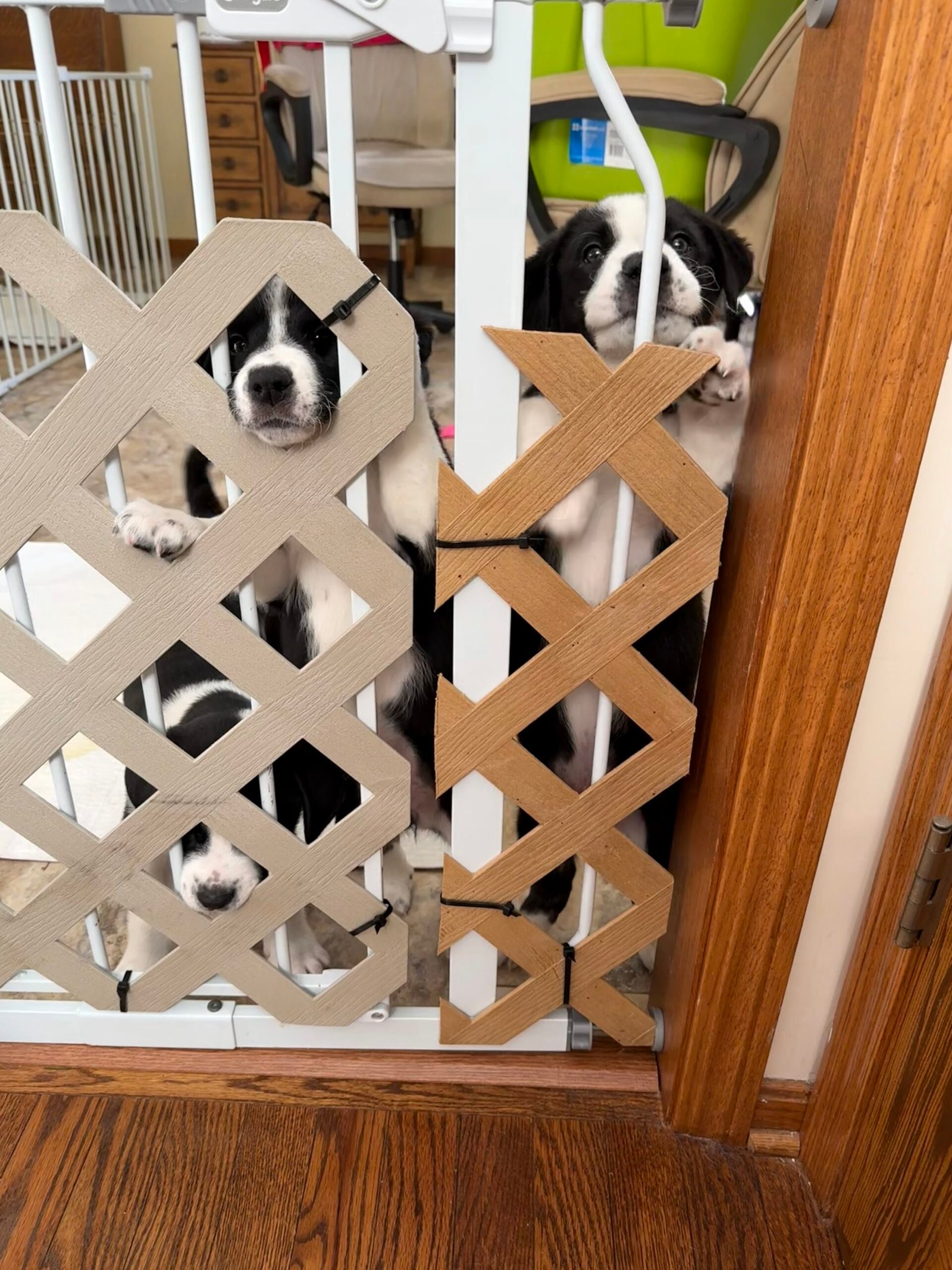 One video captures the moment Ollivier met his new mama and big sister, Emma 💗. And in the photo, you can see him settling into his forever home. Meanwhile, Valentino was busy settling in too—playing with his kitty sister Boots, meeting his cousins Ginger and Leia, and lending a paw while Mama worked. The last tow pictures are Val and Ollivier on a play date at about 6 months old. They both weigh right around 70 pounds! They are going to be big boys!!