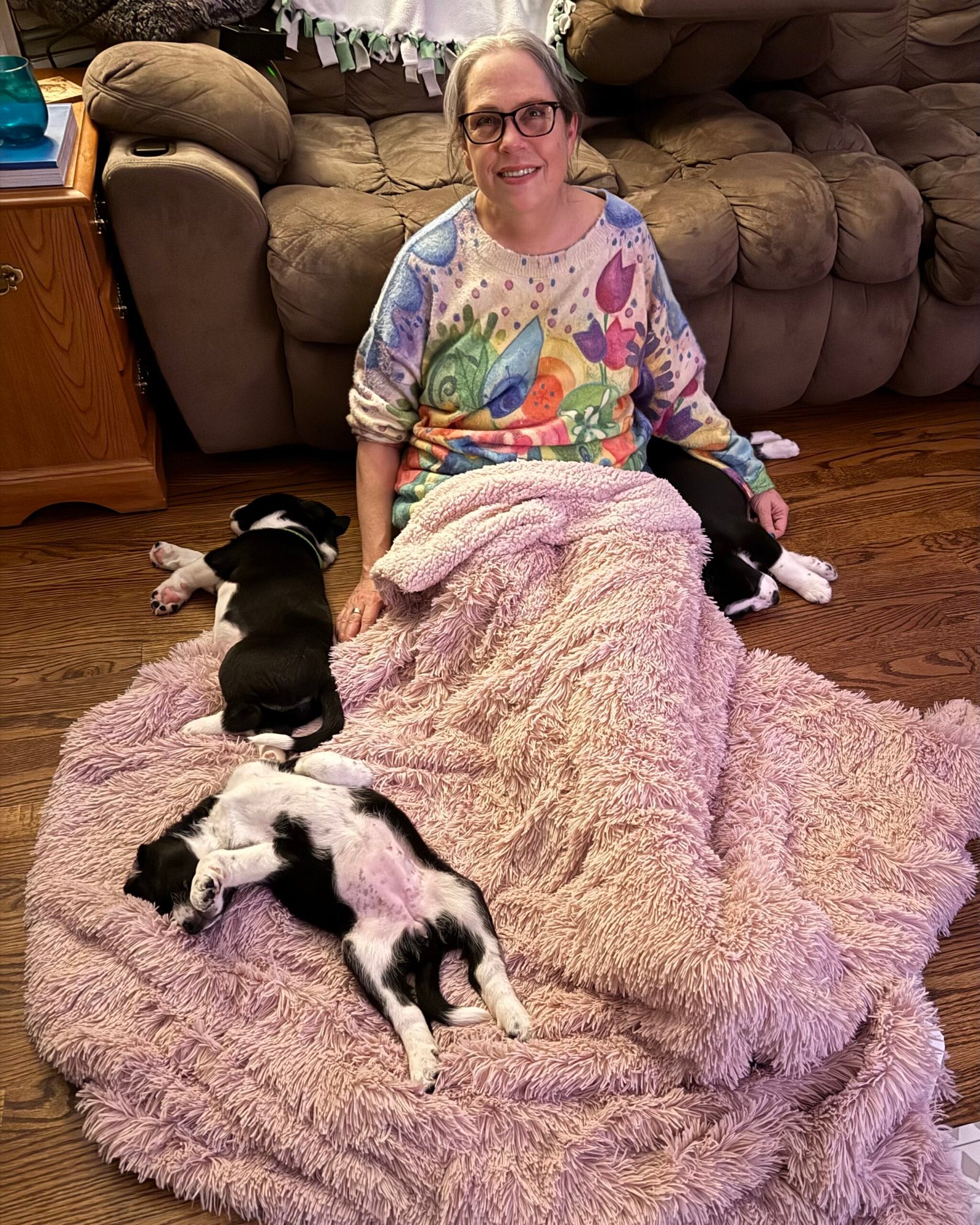 A big part of fostering is helping the puppies socialize—with both people and other animals. One of their most important teachers is Old Aunt Lily. She’s quick to remind them that not every dog appreciates a nose in their face! Her growls and barks always catch them off guard, but it’s a valuable lesson. Not all dogs are as patient, and it’s better they learn that early.