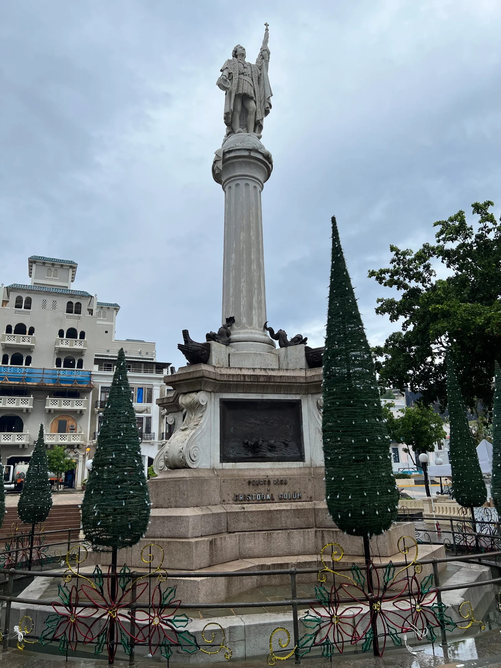 Castillo San Cristobal wasn’t open for tours yet, so we just got some pictures from the outside and explored some of the nearby plazas. Plaza Colón, similar to Plaza de Colón in Madrid, commemorates the Spanish explorer Christopher Columbus (known as Cristóbal Colón in Spanish). Plaza de Armas was already decorated for Christmas with a huge tree with bows in the center of the Four Seasons fountain.