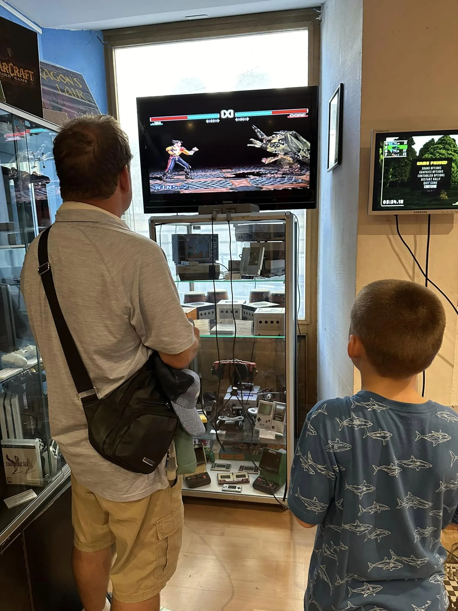 On our way back down to the shopping district, we stopped by the Peek & Poke Computer Museum. They had an impressive collection of old computer and gaming systems from the past 50 years. Many of which Betsy and I have worked on! Whatโs even more impressive, is they had several still operational and you could play games on some (of course Jackson kicked Grandpa’s butt in Mortal Combat).