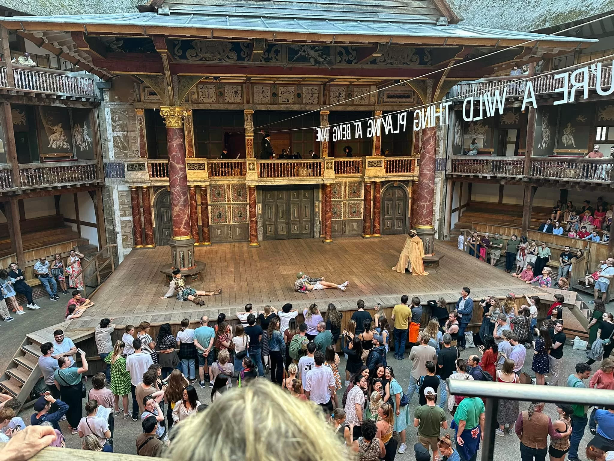 We had just enough time to check into the new hotel and freshen up before “Dinner and a Show” – a Shakespearean play at Shakespeare’s Globe Theatre! We grabbed dinner at the Swan restaurant at the Globe before the show and Betsy was ecstatic when she found we could still order Afternoon Tea (she’s been trying to squeeze it into our schedule). The tea sets were interesting – all MacBeth themed. The play was “As You Like It” – we weren’t familiar with this play and got a bit lost a couple of times, but an enjoyable experience nonetheless.