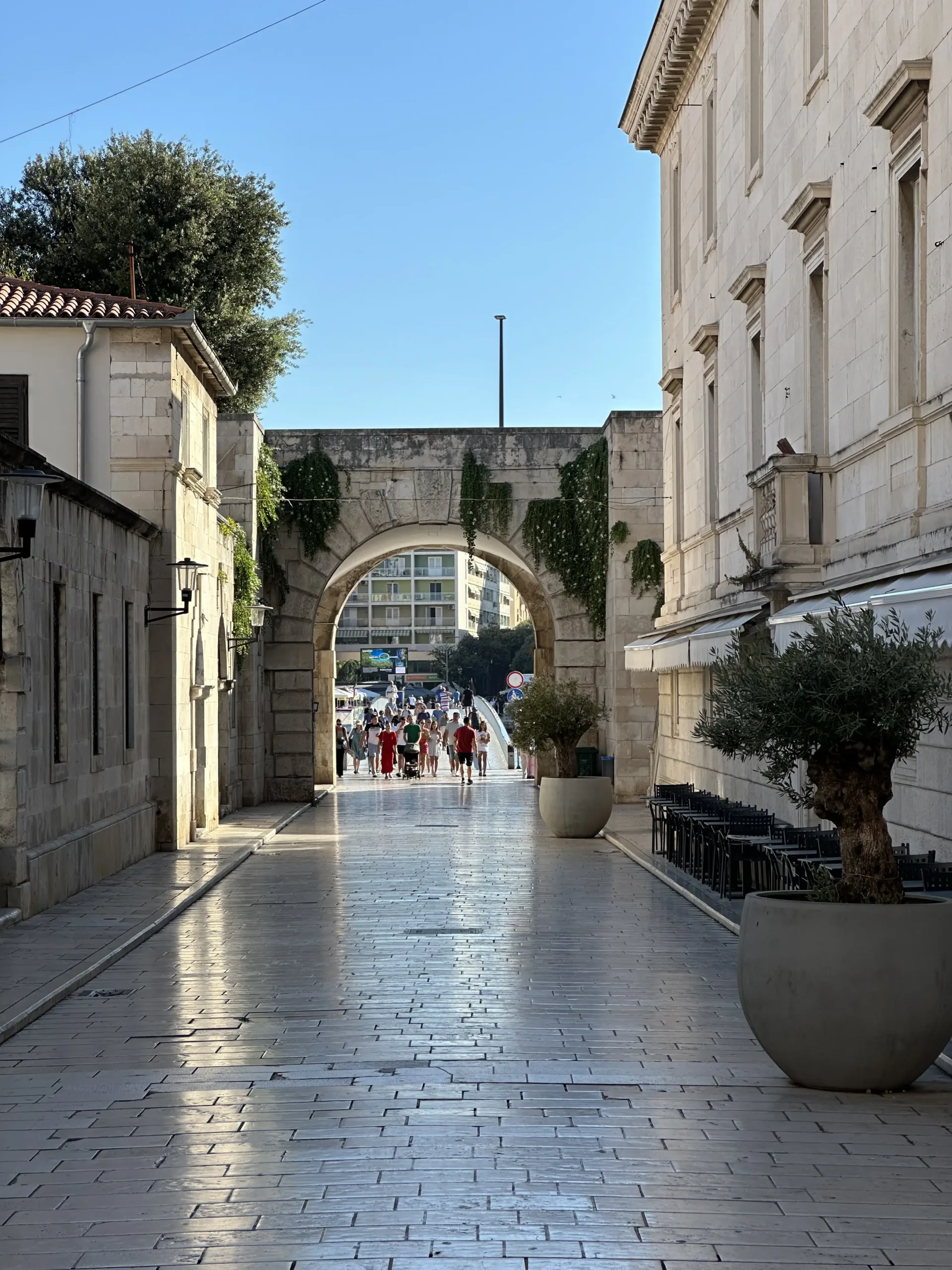 We entered Zadar’s old town through the Land Gate, the main entrance into Zadar. It was built by Michele Sanmicheli in 1543 and it has a large central arch and two smaller arches for pedestrians. Several other gates provide access through the intact city walls, including the Bridge Gate and Sea Gate. It was early in the morning, so the streets were still pretty clear as we checked out the People’s Square and the Church of St. Chrysogonus, the patron saint of Zadar.