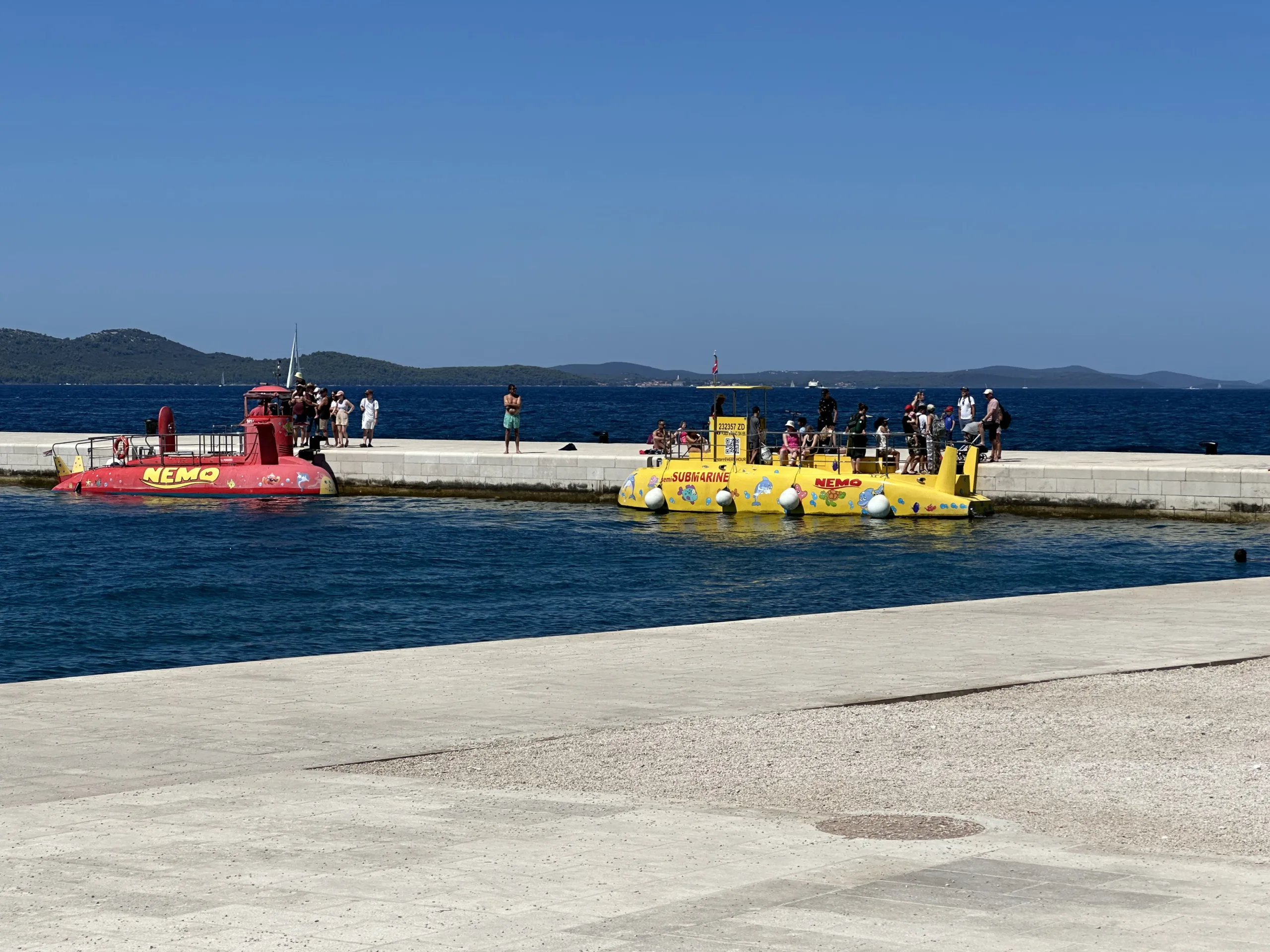 Continuing around the tip of Old Town, we experienced the Sea Organ, a giant musical instrument powered by the waves and wind to produce random harmonic sounds. The Greeting to the Sea is a large solar array that collects energy to display a night-time light display. Unfortunately, we weren’t around at night to see the display. There were also some interesting boats in the harbor, including some tourist submarines and a huge sailing boat.
